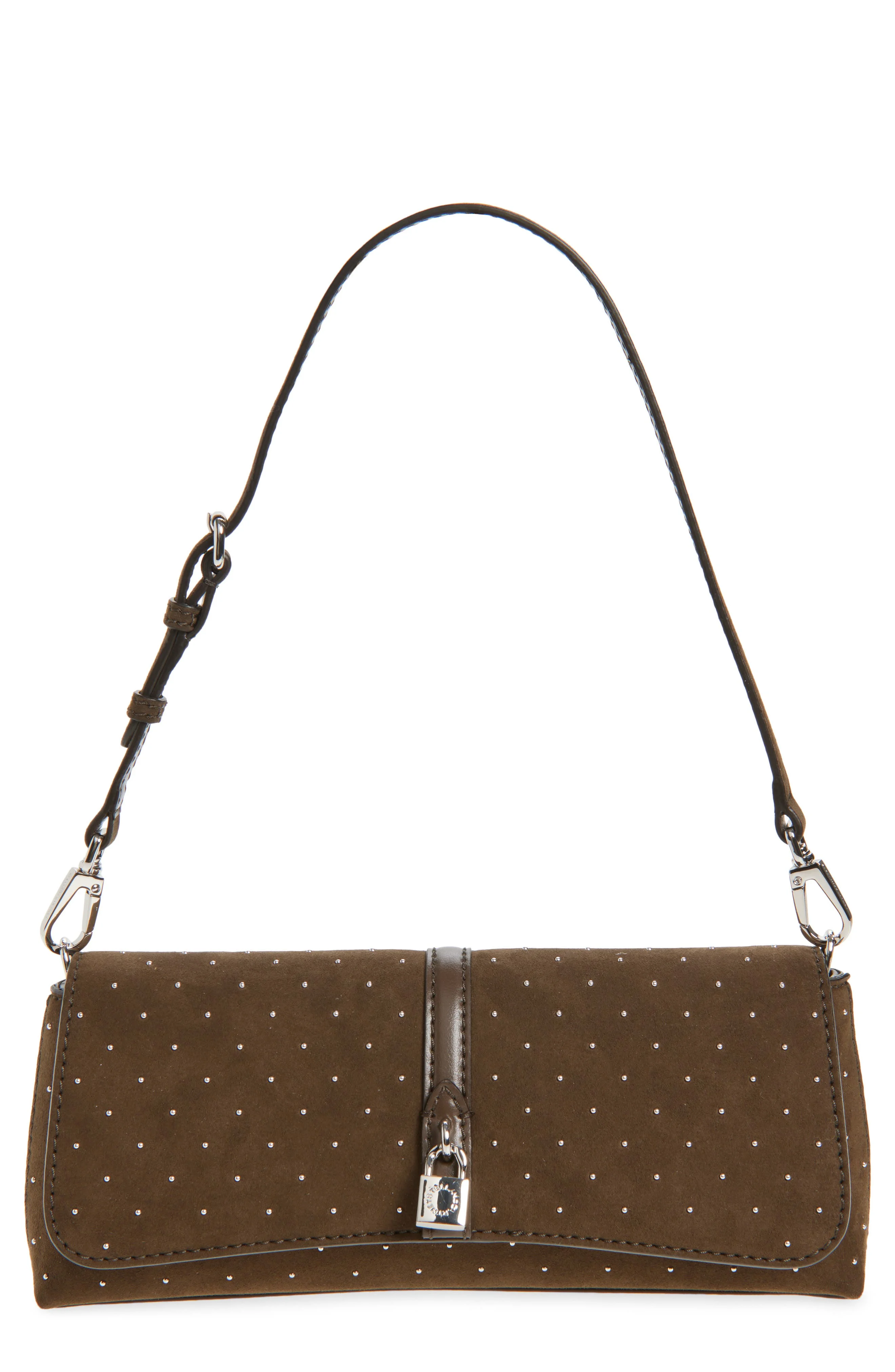 Stella McCartney Ryder Studded Faux Suede Shoulder Bag in Moka at Nordstrom