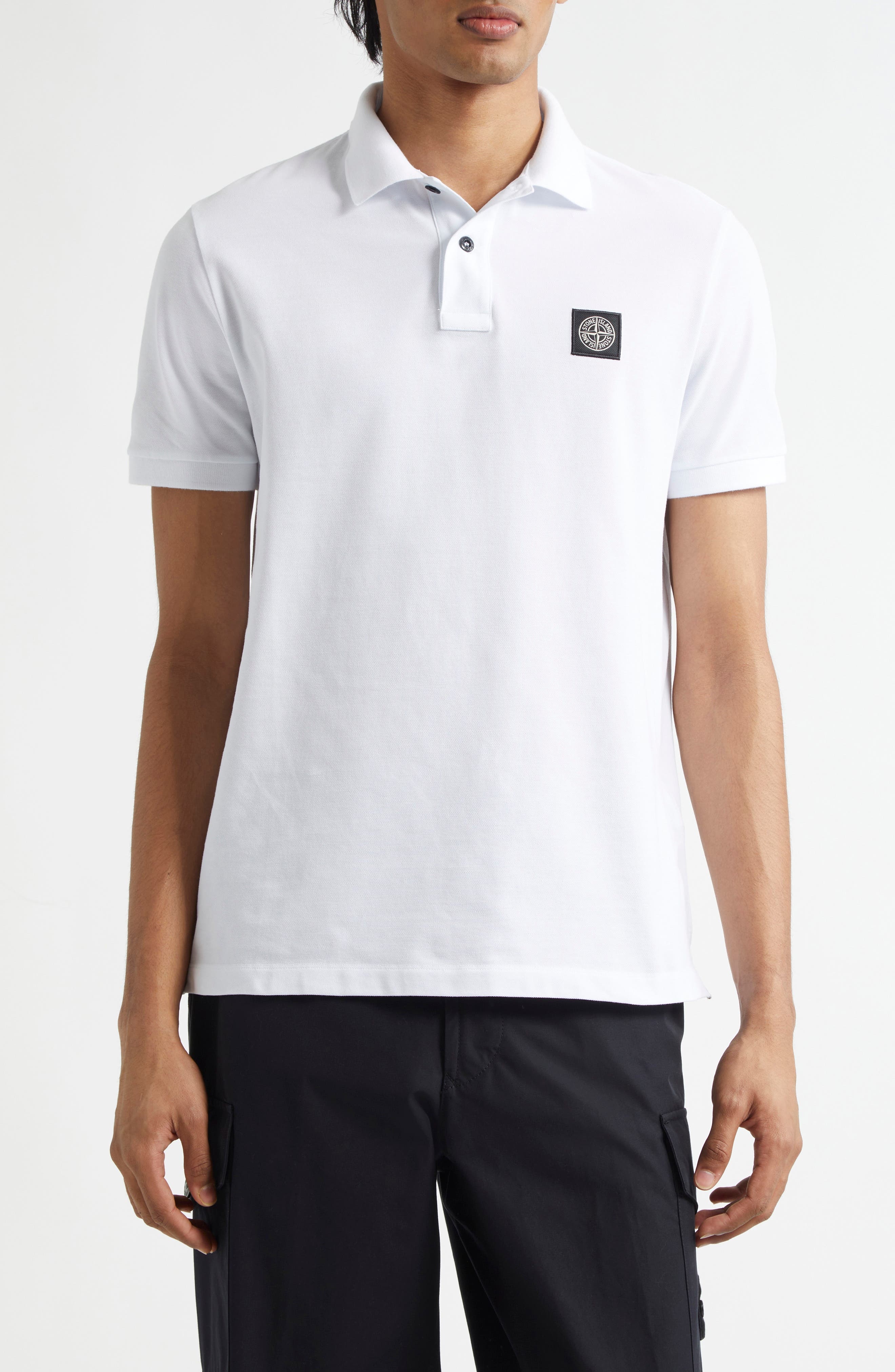 Stone Island 2SC18 Slim Fit Piqué Polo in V1001 White at Nordstrom