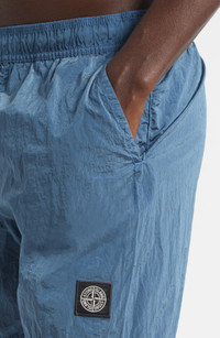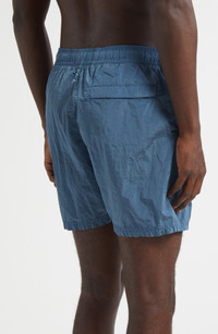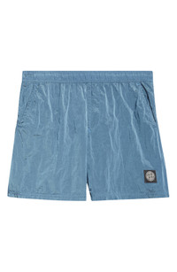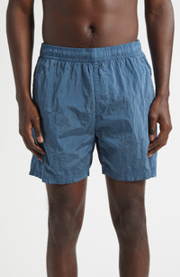 Stone Island's adventure-ready aesthetic comes through in a military-inspired compass patch on these lightweight swim trunks cut from crinkly nylon. Elastic waist with internal drawcord Front slant pockets Mesh liner 100% polyamide Machine wash, line dry Imported Designer Clothing