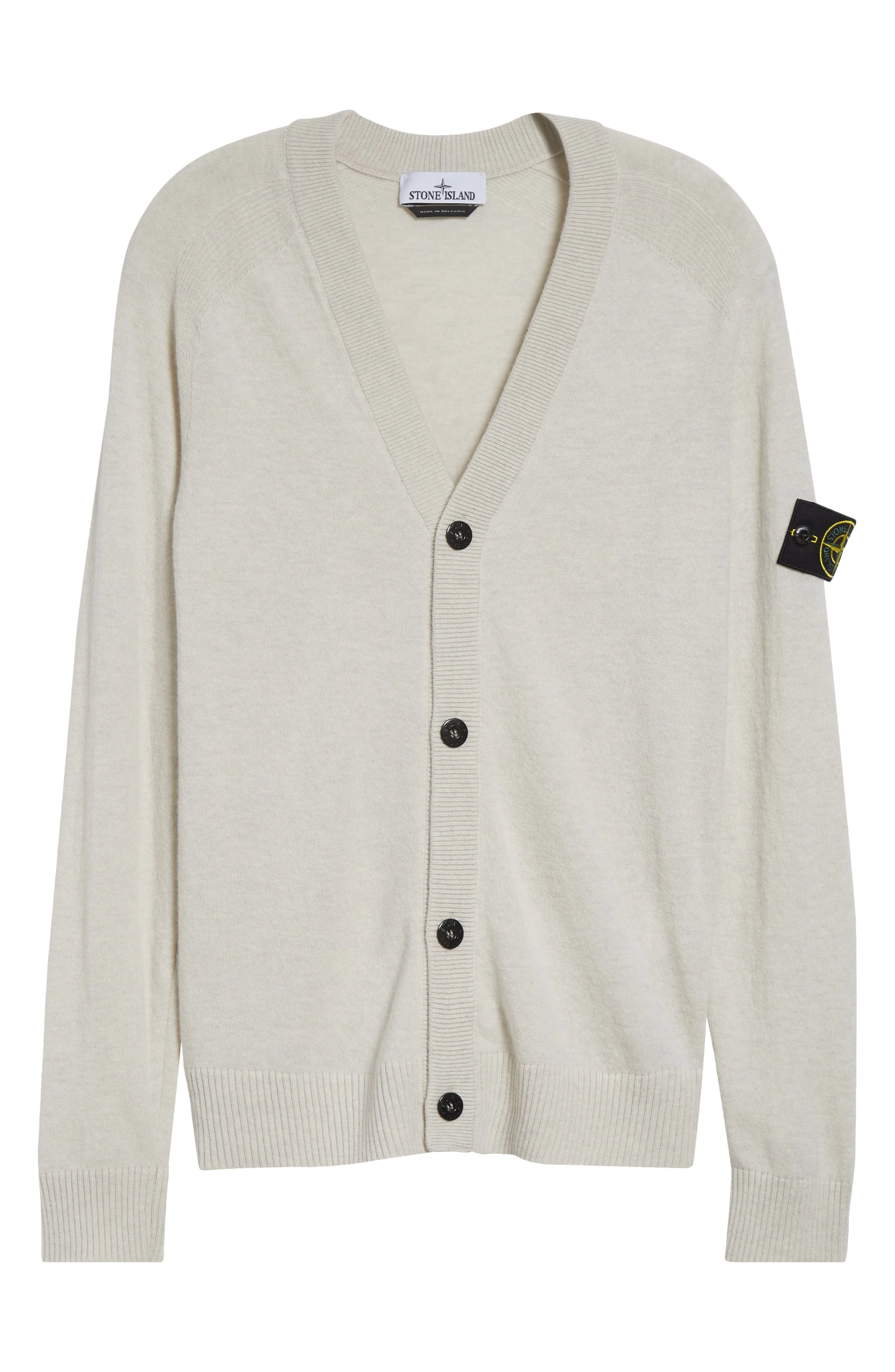 Stone Island's adventure-driven aesthetic comes through in this exceptionally soft wool cardigan with a removable compass-logo patch inspired by military insignias. Front button closure V-neck Long sleeves Ribbed cuffs and hem 100% virgin wool Dry clean or hand wash, dry flat Imported Designer Clothing