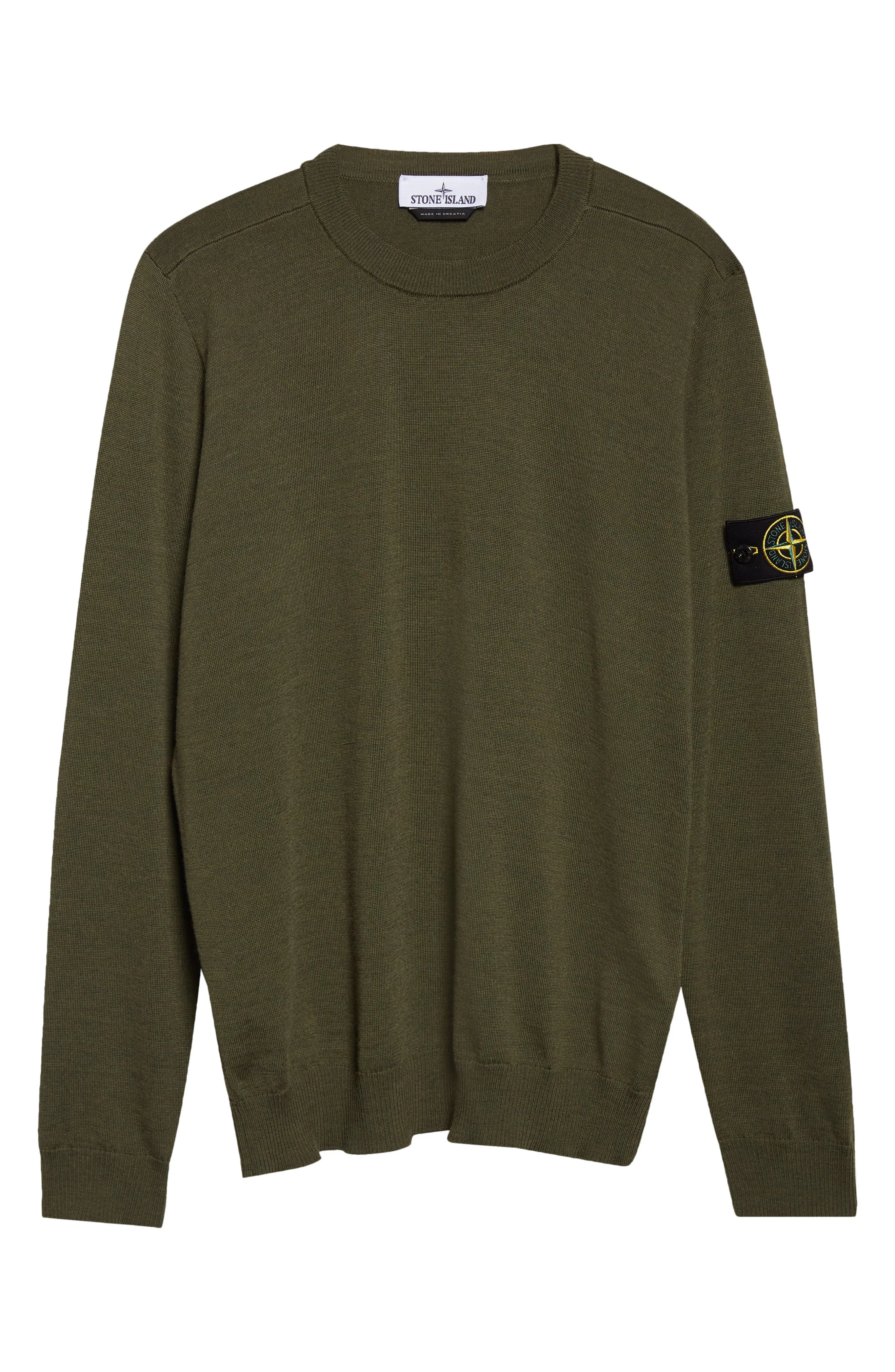 Stone Island Compass Patch Virgin Wool Crewneck Sweater in Military Green at Nordstrom