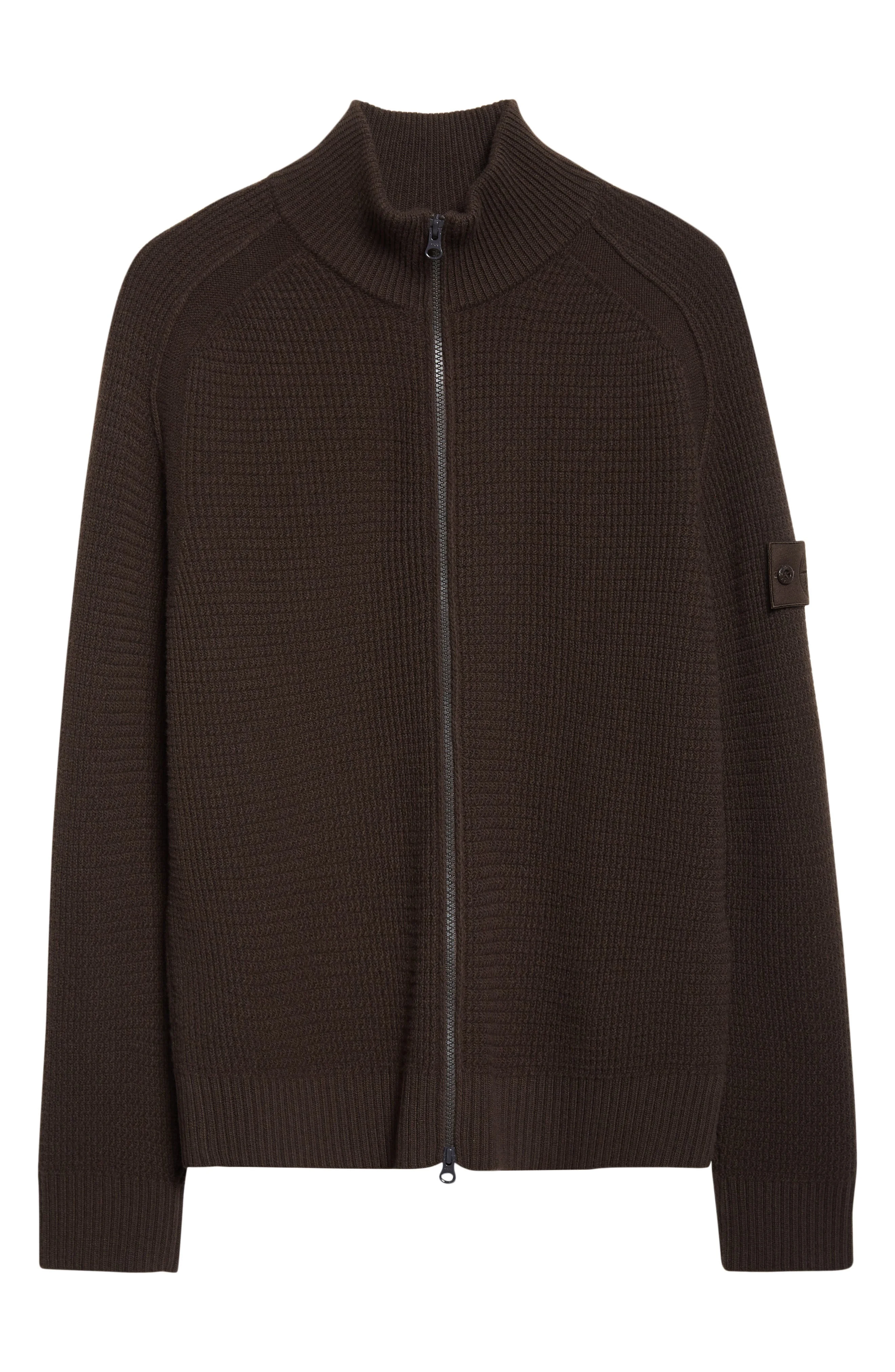 Stone Island Ghost Virgin Wool Zip Cardigan in Dark Brown at Nordstrom