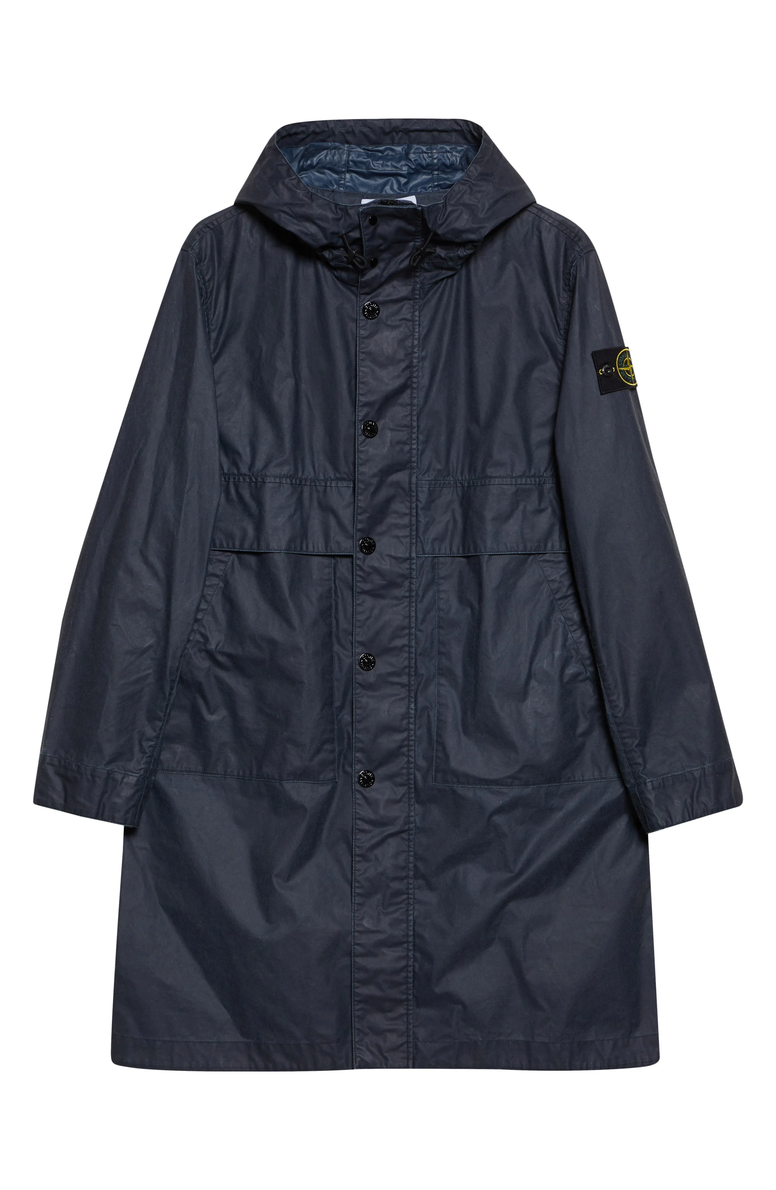 Stone Island Waxed Long Parka in Navy Blue at Nordstrom