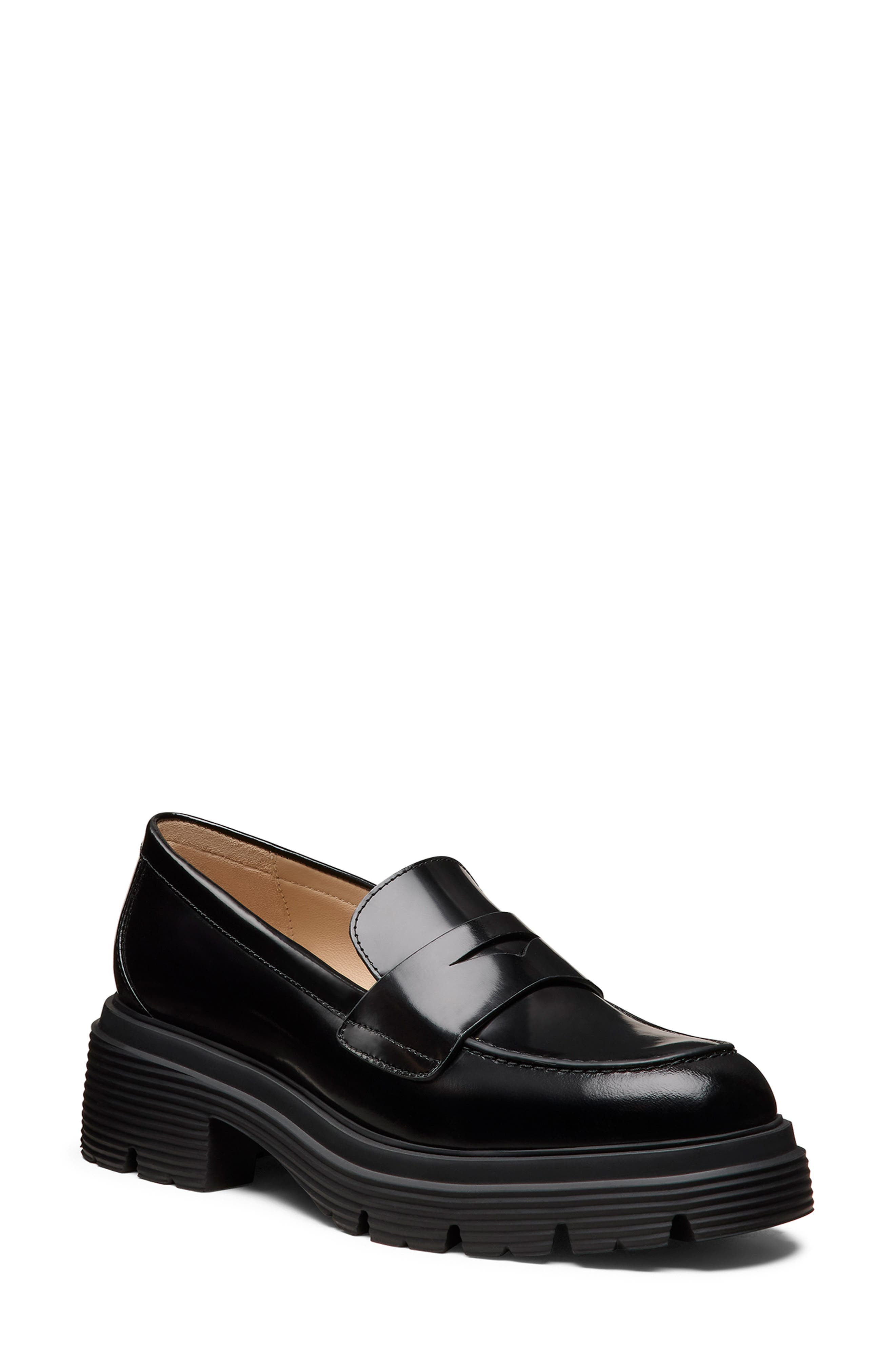 Stuart Weitzman Hudson Lite Lugged Platform Penny Loafer in Black at Nordstrom