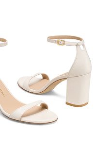 Handcrafted from smooth Spanish leather, Stuart Weitzman's iconic, event-favorite sandal is revamped with a towering block heel, ensuring sure-footed moves from dinner to dance floor. An adjustable ankle strap offers a secure fit every step. 3" heel Adjustable ankle strap with buckle closure Leather upper, lining and sole Made in Spain