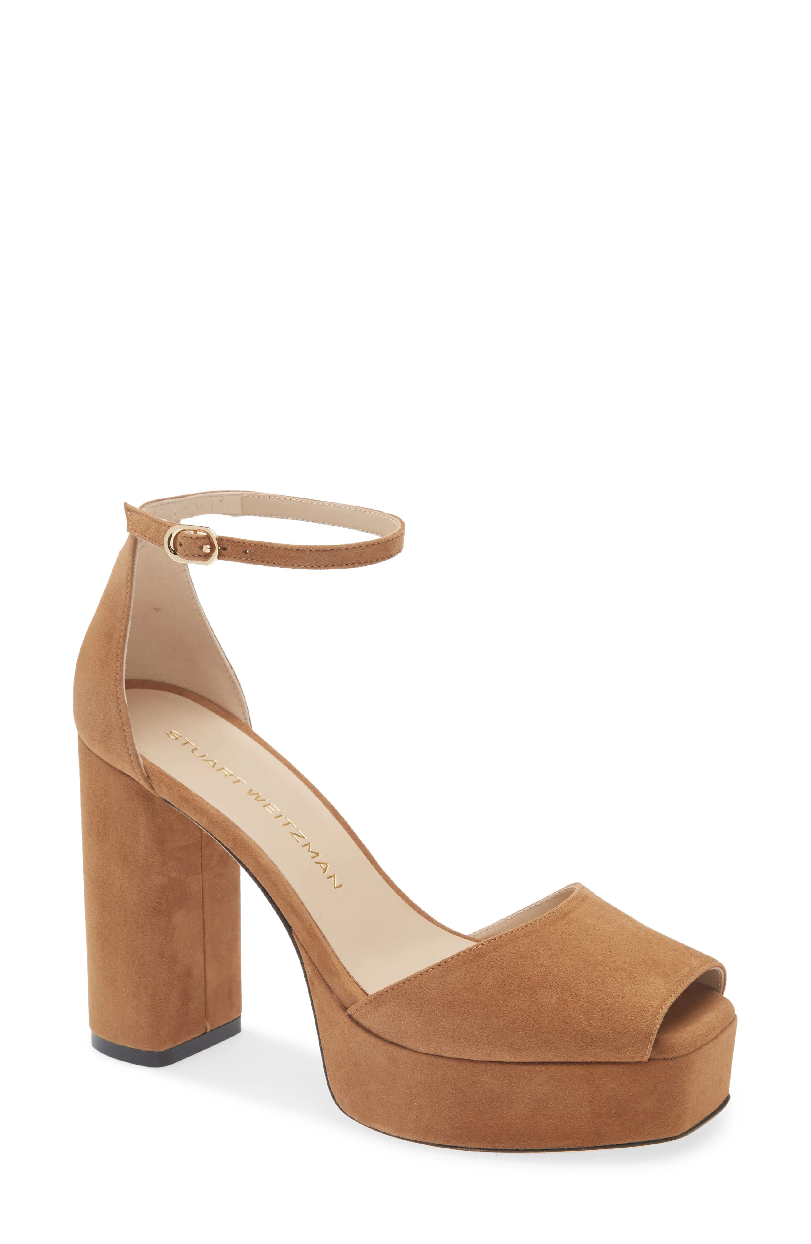 Stuart Weitzman Sabrina Platform Ankle Strap Sandal in Toasted Almond at Nordstrom