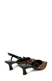 A leopard-patterned upper and pointy toe bring a fierce aesthetic to a Spanish-made slingback pump lifted by a flared kitten heel. 1 3/4" heel Adjustable slingback strap with buckle closure Textile upper/leather lining and sole Made in Spain