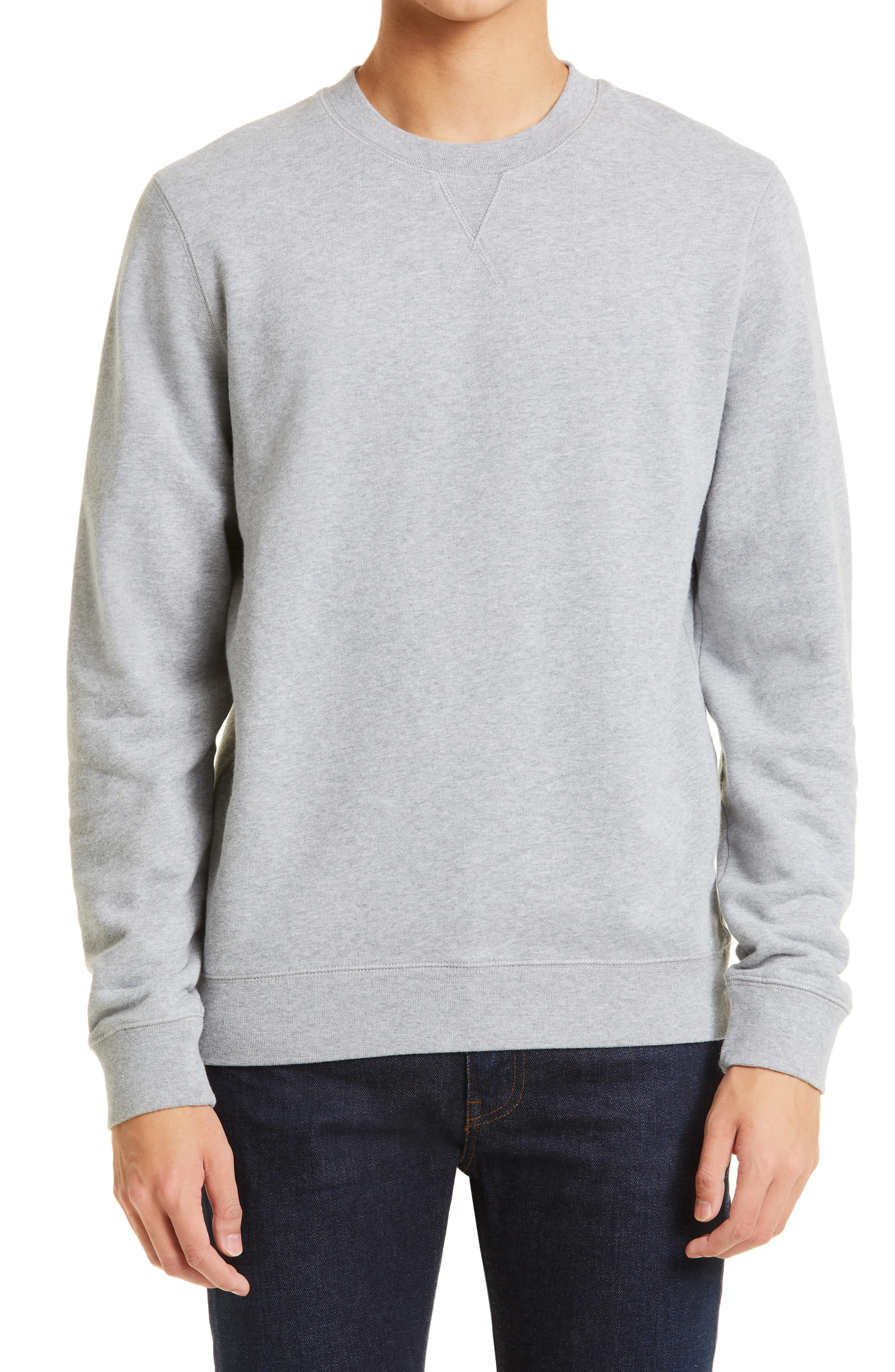 The renowned British label serves up long-lasting quality and comfort with this mélange sweatshirt crafted from supremely soft cotton French terry. 27 1/2" length (size Medium) Crewneck 100% cotton Machine wash, dry flat Made in Portugal Men's Designer Clothing