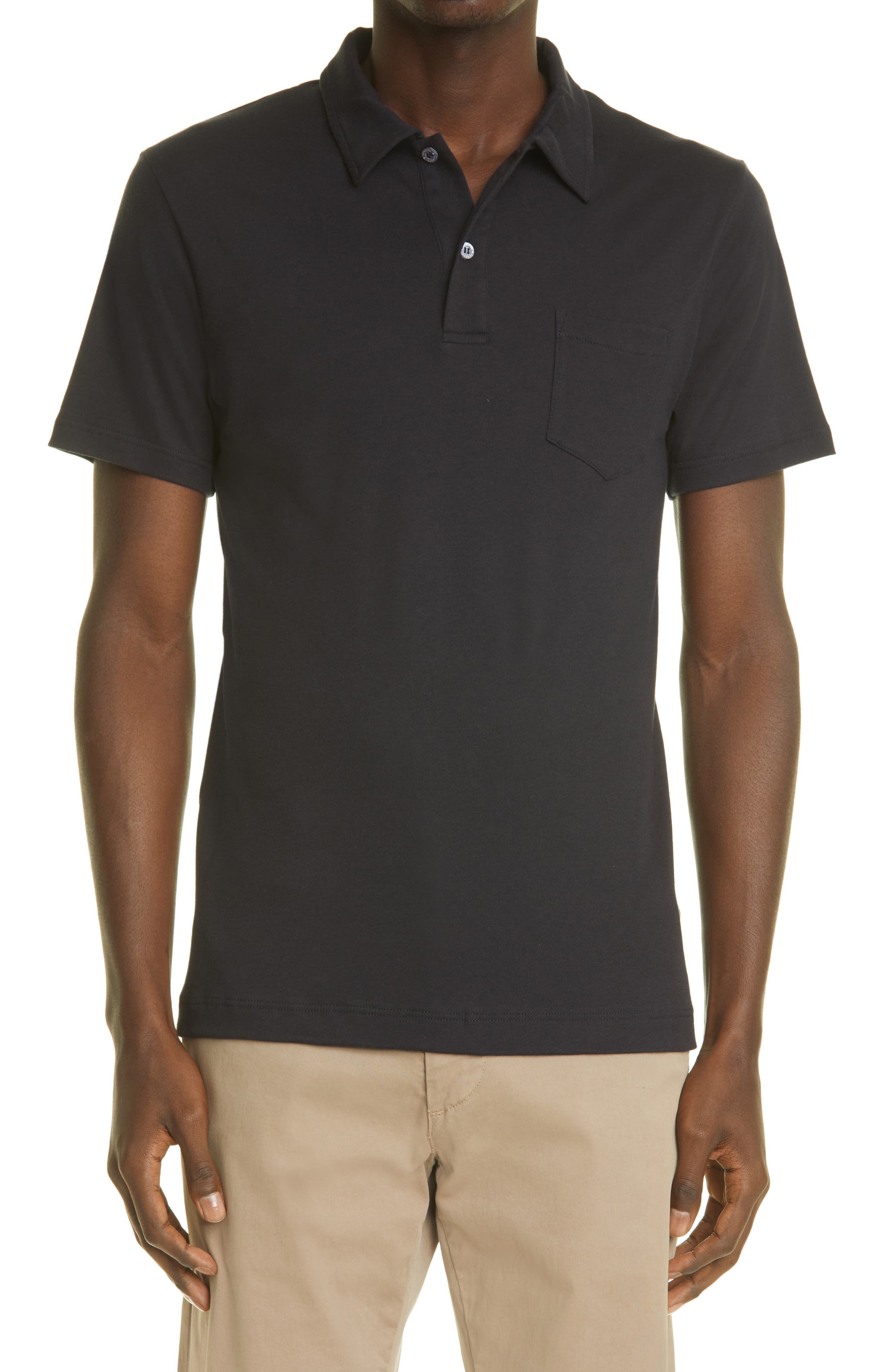 The renowned British label serves up long-lasting quality and comfort with this slim-fit cotton polo originally tailored for a doubly dapper secret agent. 28" length (size medium) Button half-placket Johnny collar Short sleeves Chest patch pocket 100% cotton Machine wash, dry flat Made in Portugal Men's Designer Clothing