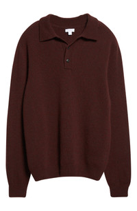 Minimal detailing means maximum versatility for this timeless polo-sweater made with fine lambswool yarns from one of the world's oldest spinners, then washed in Scottish spring water for a supersoft handfeel. 27" length (size Medium) Button half placket Spread collar Long sleeves Ribbed cuffs and hem 100% lambswool Dry clean or hand wash, dry flat Made in the UK Designer Clothing
