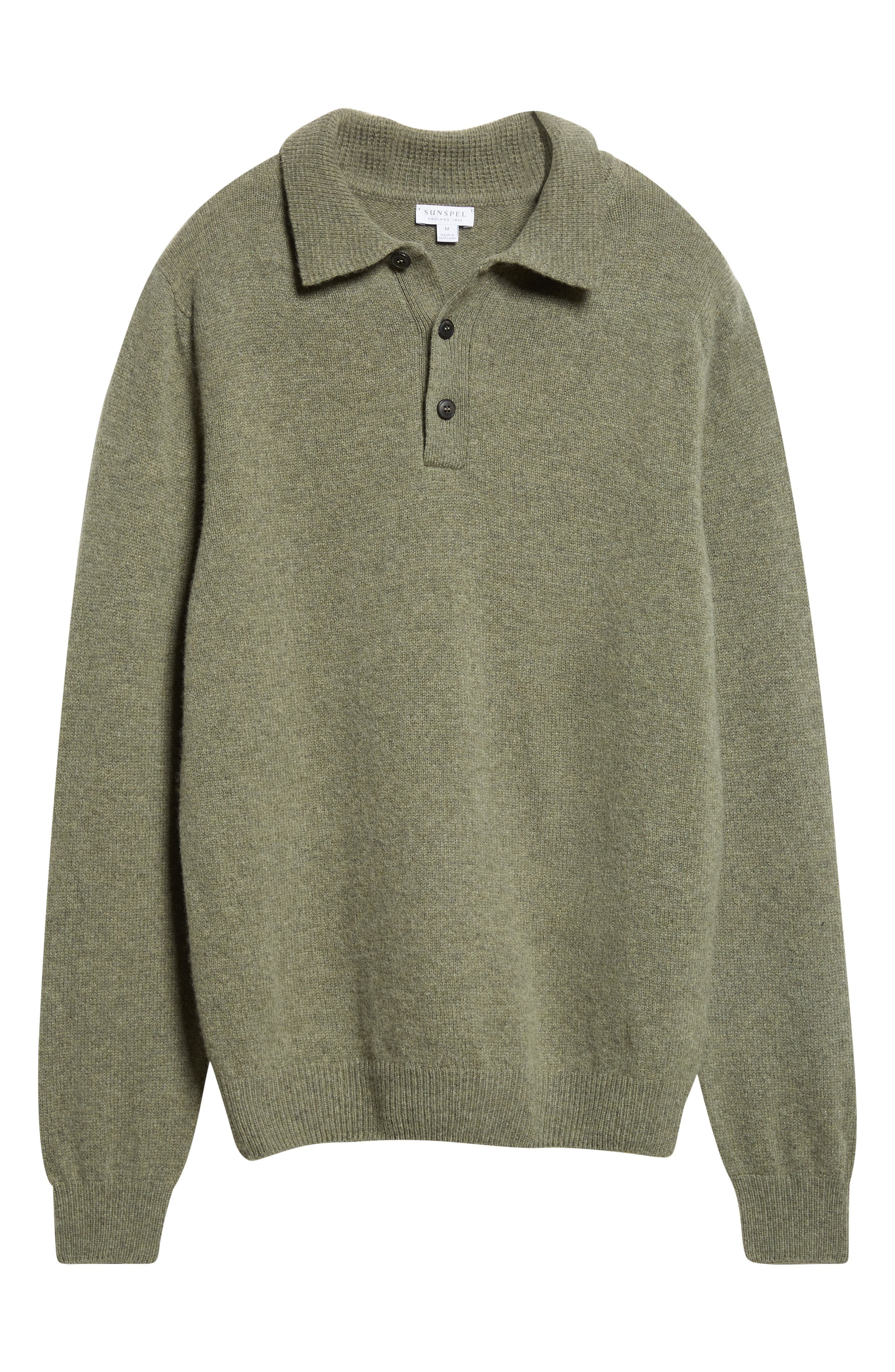 Minimal detailing means maximum versatility for this timeless polo-sweater made with fine lambswool yarns from one of the world's oldest spinners, then washed in Scottish spring water for a supersoft handfeel. 27" length (size Medium) Button half placket Spread collar Long sleeves Ribbed cuffs and hem 100% lambswool Dry clean or hand wash, dry flat Made in the UK Designer Clothing
