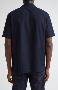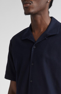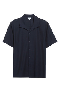 Sunspel Short Sleeve Textured Jersey Button-Up Shirt in Midnight Navy at Nordstrom