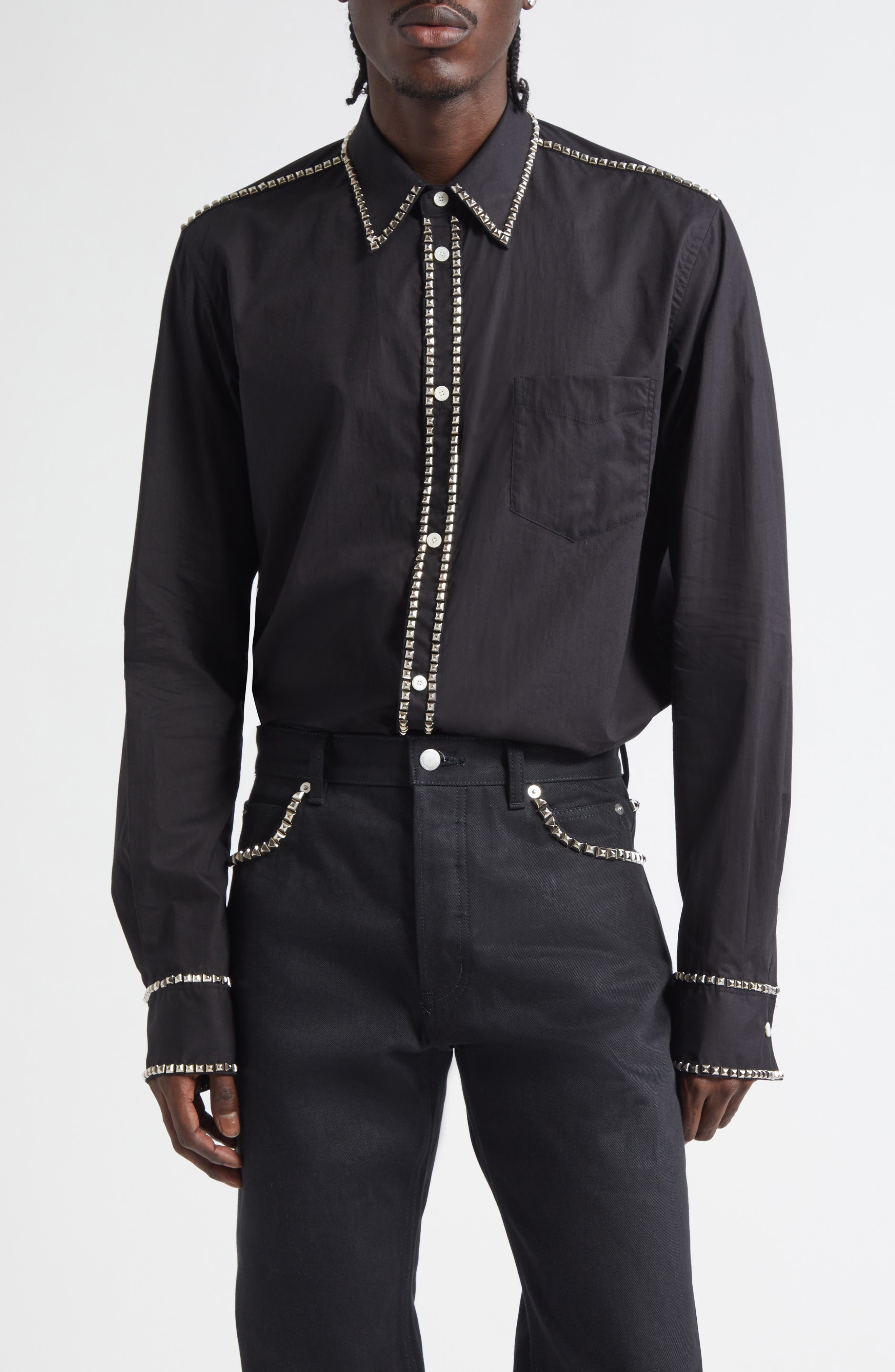 TAKAHIROMIYASHITA TheSoloist. Stud Embellished Reglar Collar Broad Button-Up Shirt in Black at Nords