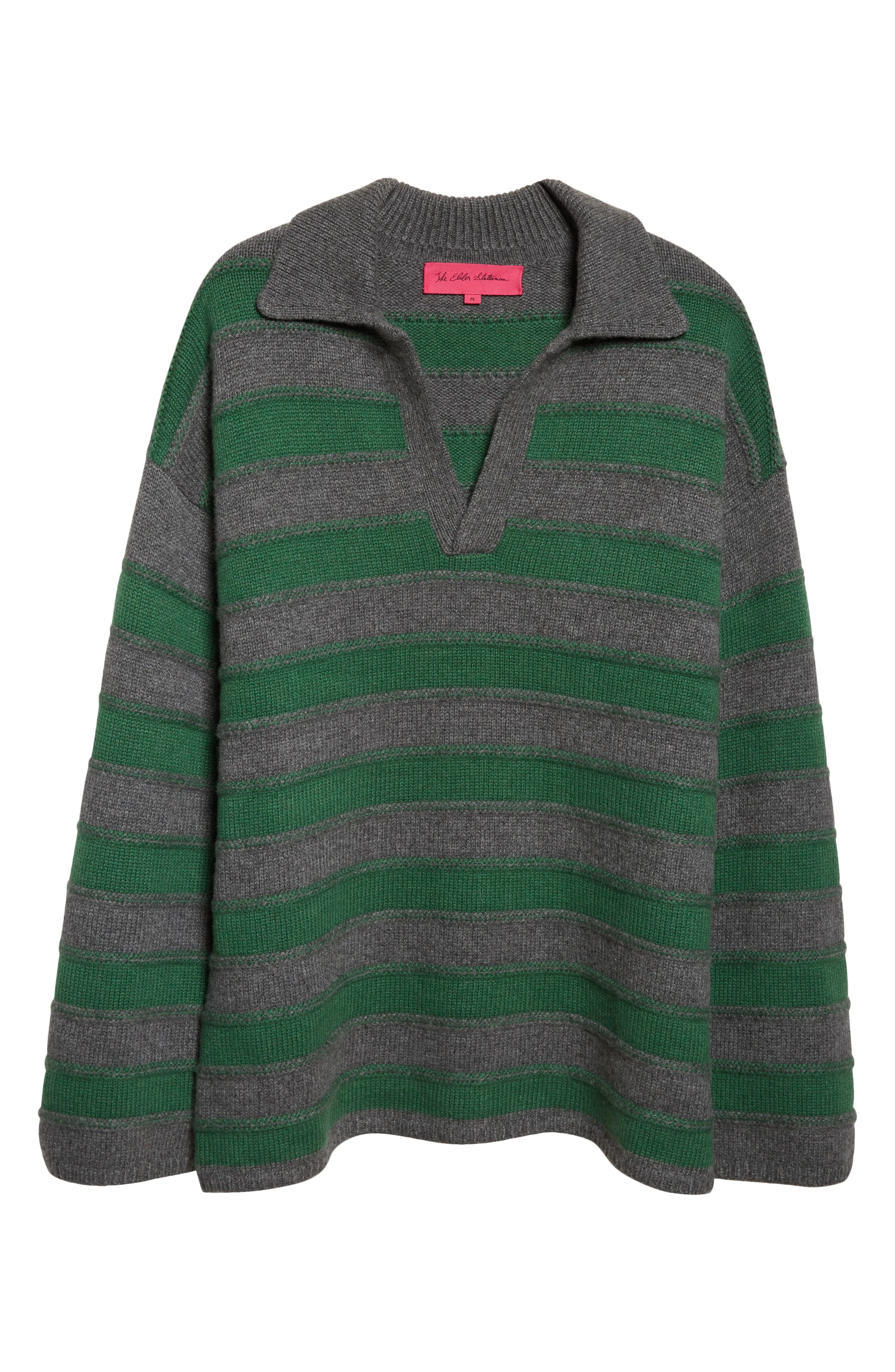 The Elder Statesman Dume Stripe Cashmere Rugby Sweater in Fern/Granite at Nordstrom