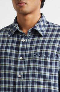 An understated nod to West Coast cool, this relaxed button-up redefines plaid with a touch of elevated craftsmanship. Cut from lightweight cotton, it’s finished with a fringe-trimmed chest pocket that offers added texture to its easygoing silhouette. Front button closure Spread collar Long sleeves with button cuffs Chest patch pocket Curved hem 100% cotton Dry clean Imported Designer Clothing