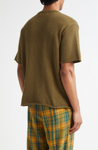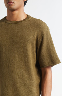Elevating the everyday, this knitted cotton T-shirt brings sweater-like substance to a casual silhouette. The jersey-stitch design adds depth and dimension, while rolled edges and a ribbed neckline nod to the relaxed refinement of West Coast luxury. Crewneck Short sleeves 100% cotton Hand wash, dry flat Made in the USA of imported fabric Designer Clothing