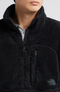 This fleece pullover combines durable materials with a heavyweight structure and a relaxed fit to make a cold-weather go-to that is warm and easy to wear. 26 1/2" length (size Medium) Half-zip closure Stand collar Chest zip pocket Elastic cuffs 346 g/m² fleece shell Lined 100% polyester Machine wash, tumble dry Imported