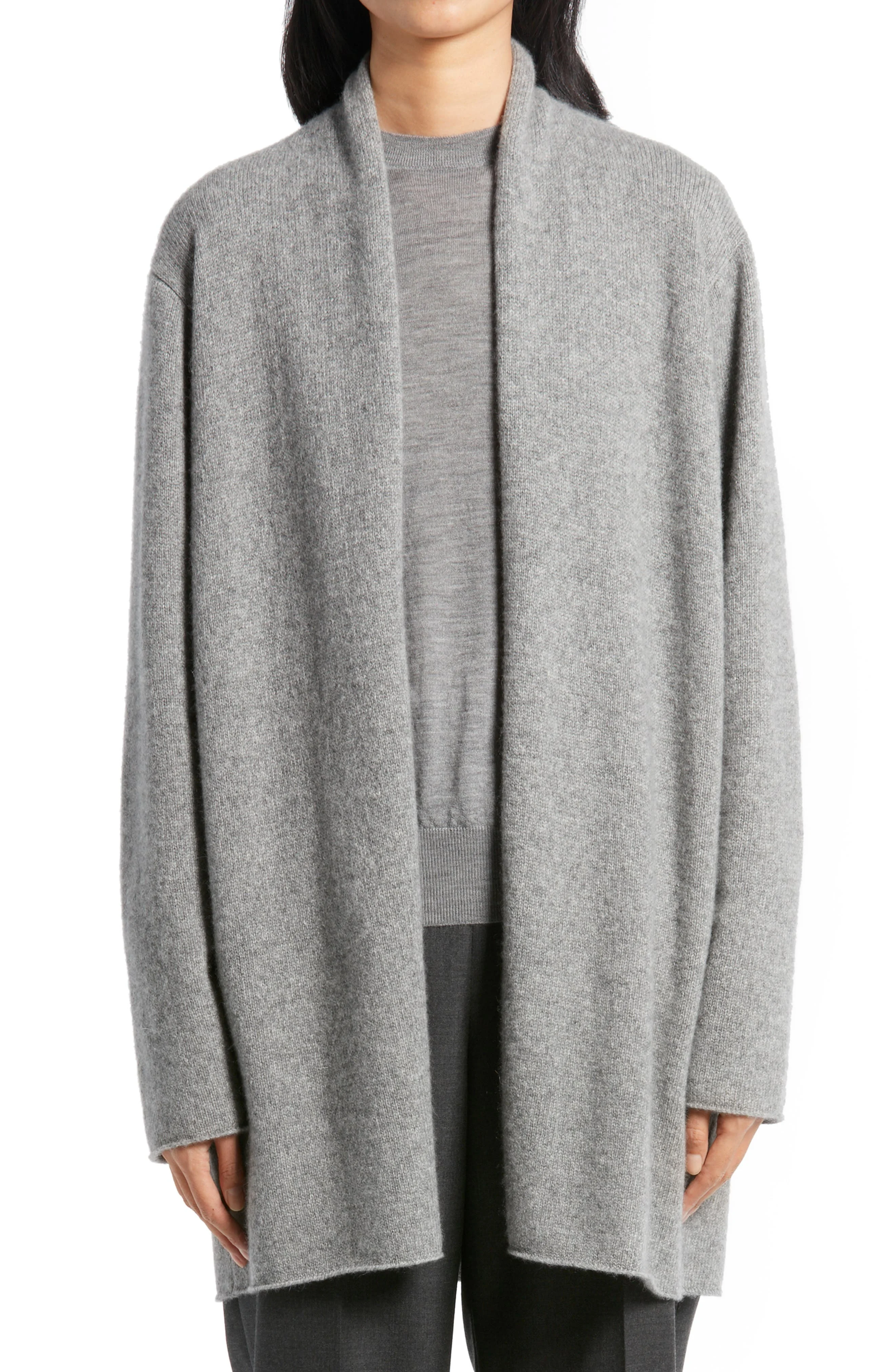 The label's signature reverse stitch stripes the back of this soft cashmere cardigan, emphasizing the open-front style's clean, long lines. 33 1/2" length (size Medium) Open front Long sleeves 100% cashmere Hand wash, dry flat Made in Italy Women's Designer Clothing