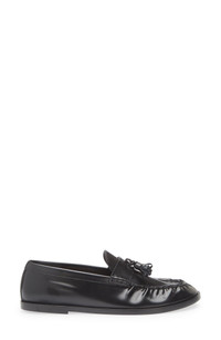 Folded tassels adorn a moc-toe loafer shaped from glossy Italian leather. Leather upper, lining and sole Made in Italy Designer Shoes