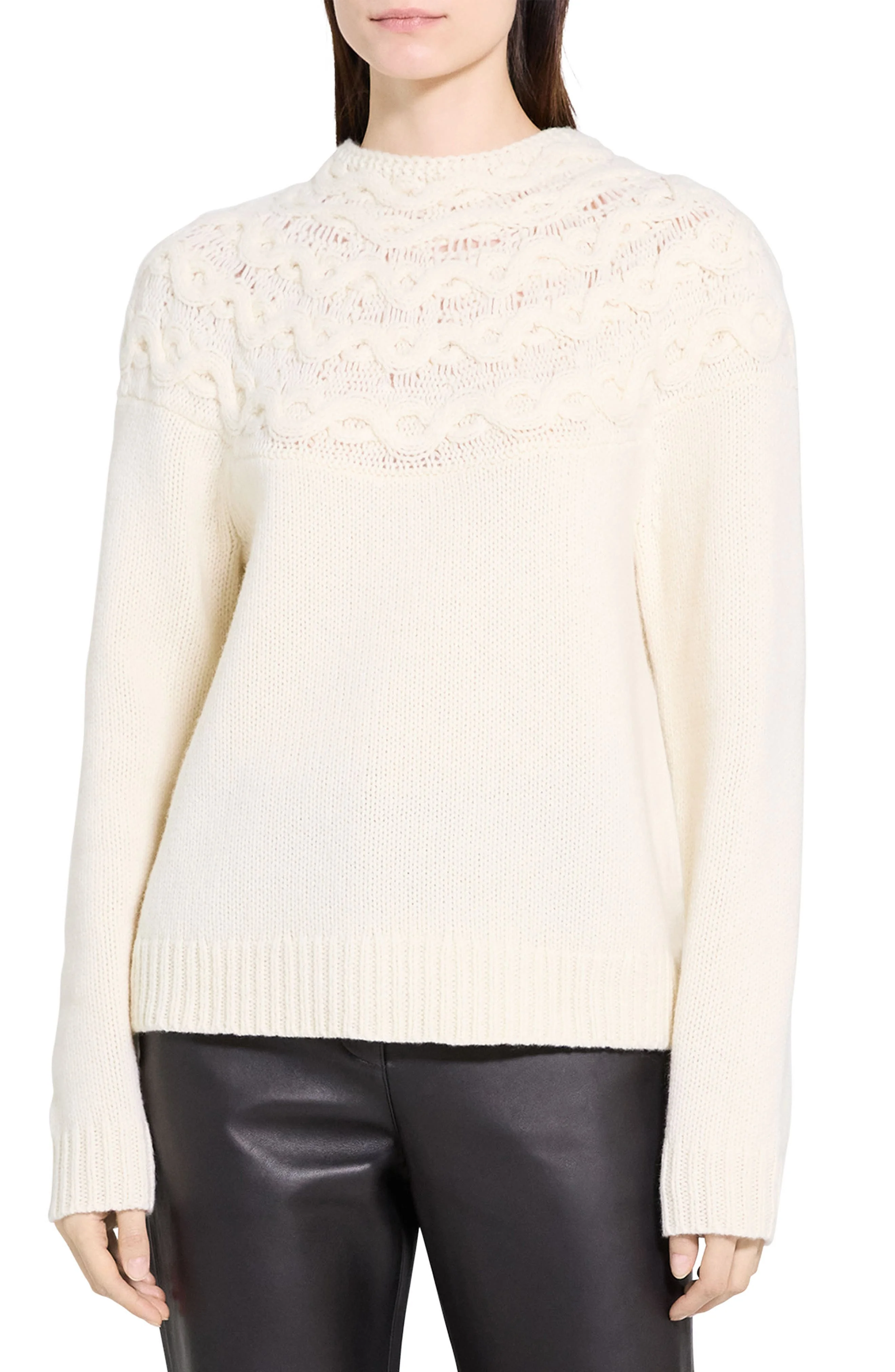 Theory Cable Stitch Yoke Wool & Cashmere Sweater in Ivory at Nordstrom