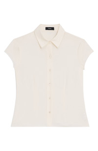 Slight sleeves frame this polished desk-to-dinner shirt cut from rich silk. 22" length (size Medium) Front button closure Spread collar Cap sleeves 100% silk Dry clean Imported