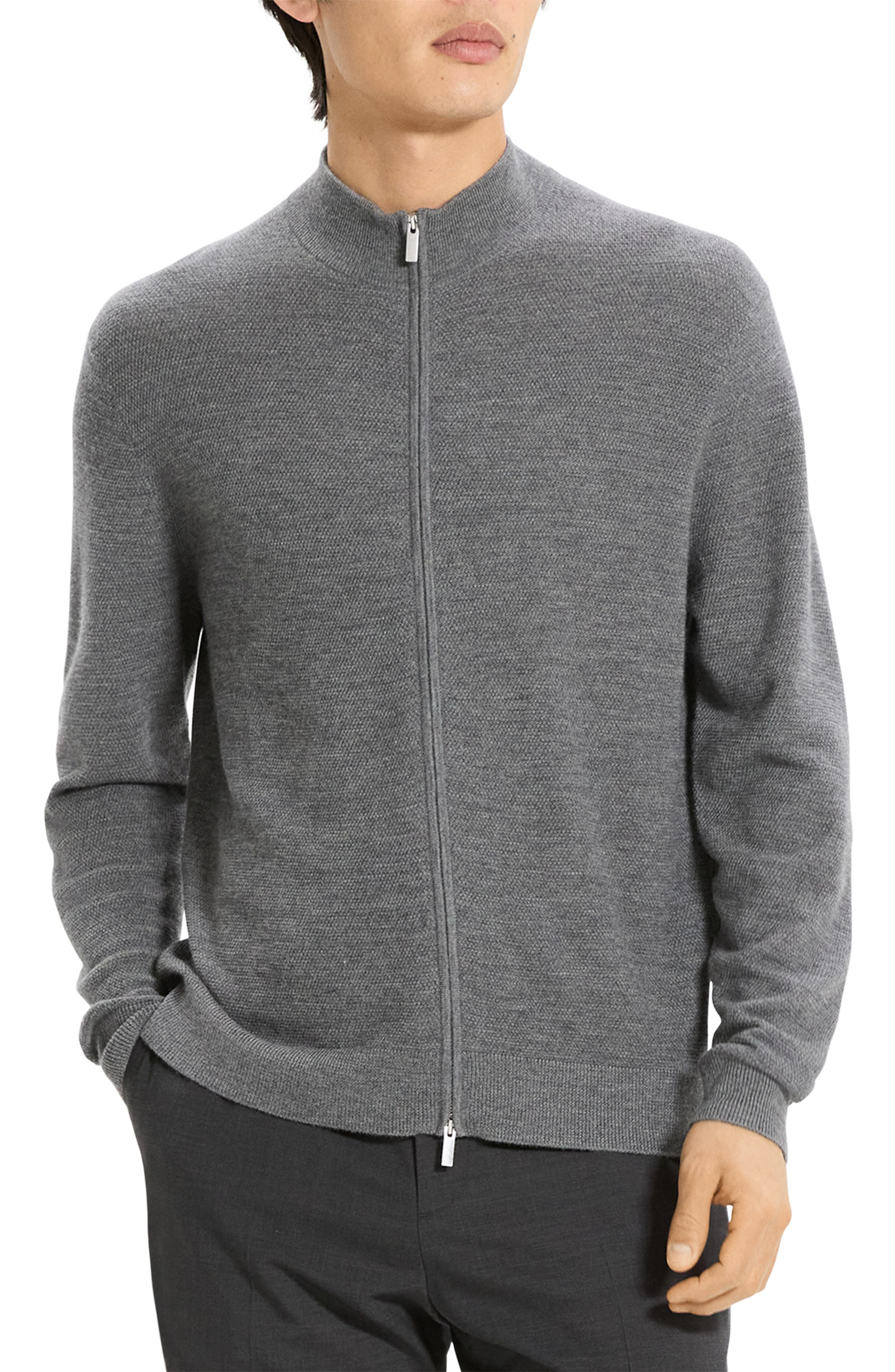 A clean, sporty design gets elevated with the luxurious softness of cashmere in this zip cardigan knit for a fit that layers easily to add warmth to your look as the season's cold deepens. Two-way front-zip closure Mock neck Long sleeves with ribbed cuffs 100% cashmere Machine wash, dry flat Imported