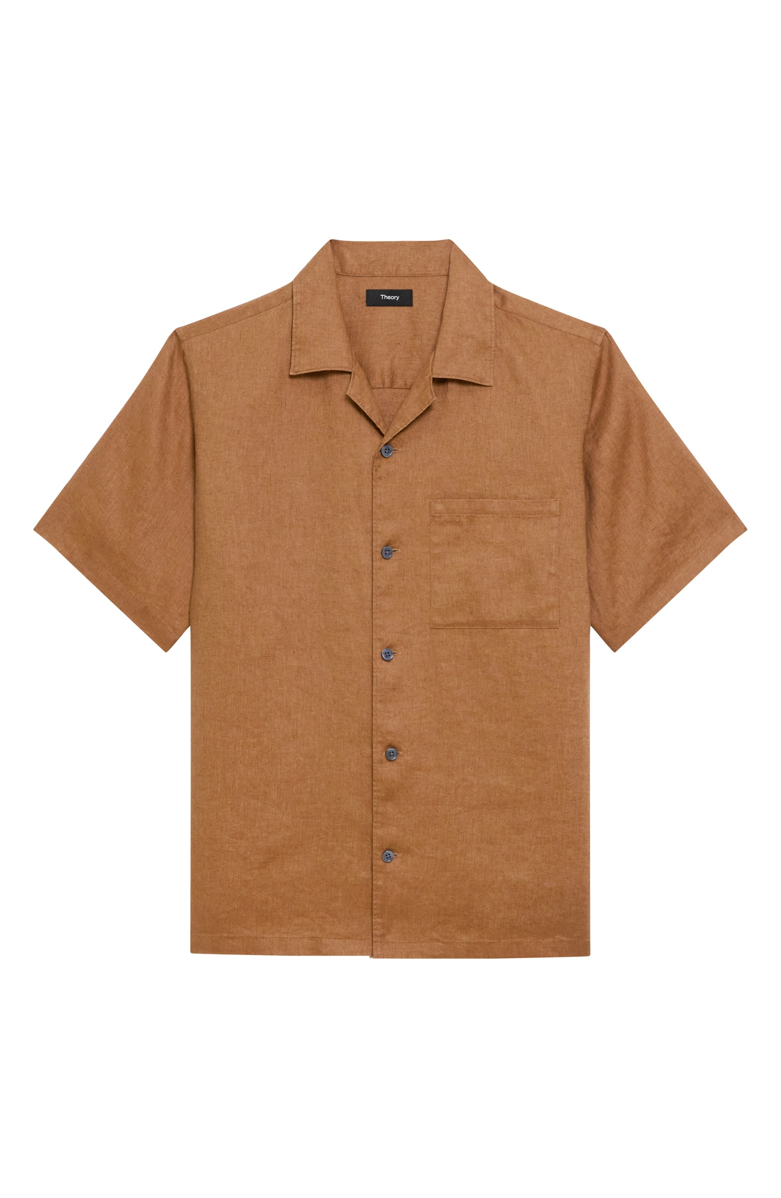 Theory Noll Short Sleeve Linen Button-Up Camp Shirt in Deep Tobacco at Nordstrom