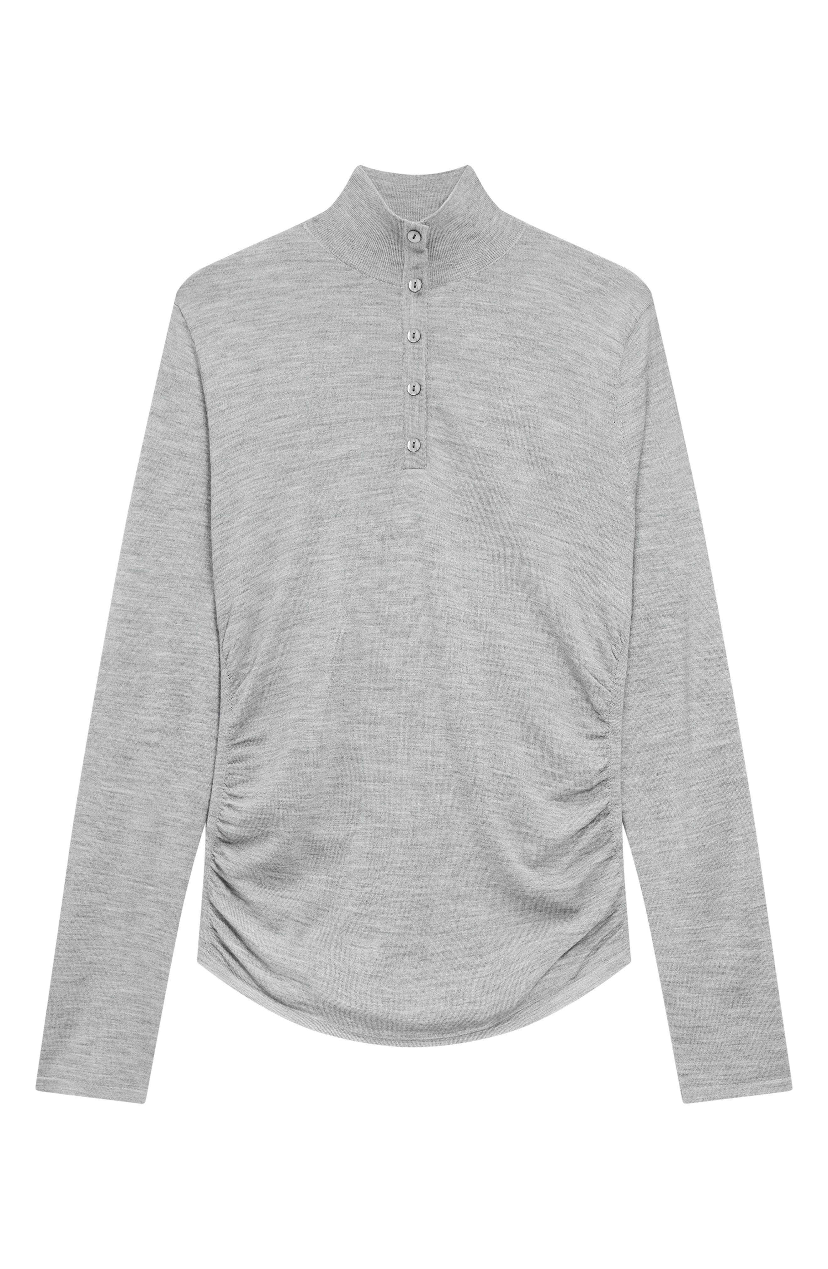 Theory Shirred Mock Neck Merino Wool Top in Light Heather Grey at Nordstrom