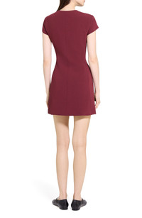 Theory Short Sleeve Front Zip Minidress in Grenache