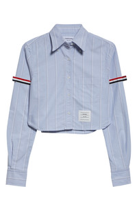Armband Stripe Cotton Poplin Crop Button-Down Shirt