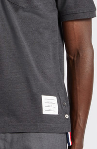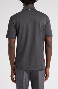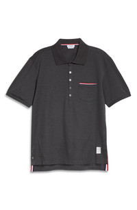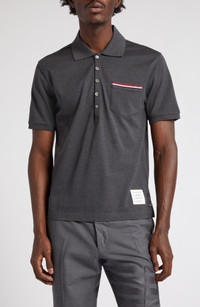 A tipped chest pocket and button-down side vents add sporty sophistication to a pique polo in soft mercerized cotton. 26" front length (size 2) Five-button placket Short sleeves Chest pocket Step hem with button side vents 100% cotton Dry clean or hand wash, dry flat Made in Japan Men's Designer