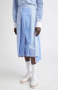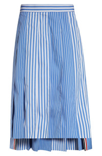 Thom Browne Awning Stripe Pleated Cotton Poplin Skirt in Medium Blue at Nordstrom