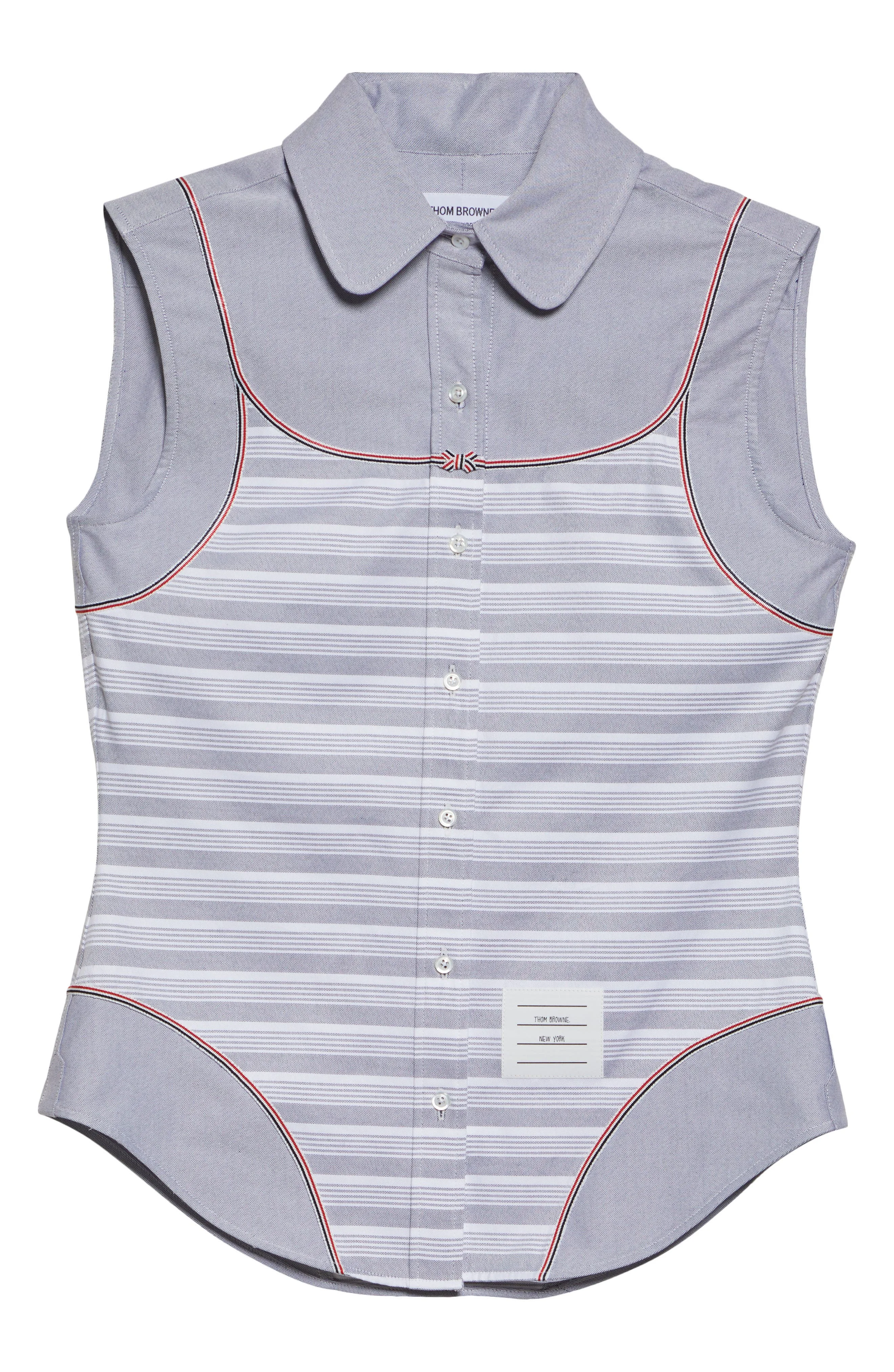 Thom Browne Bodysuit Effect Sleeveless Oxford Shirt in Navy at Nordstrom