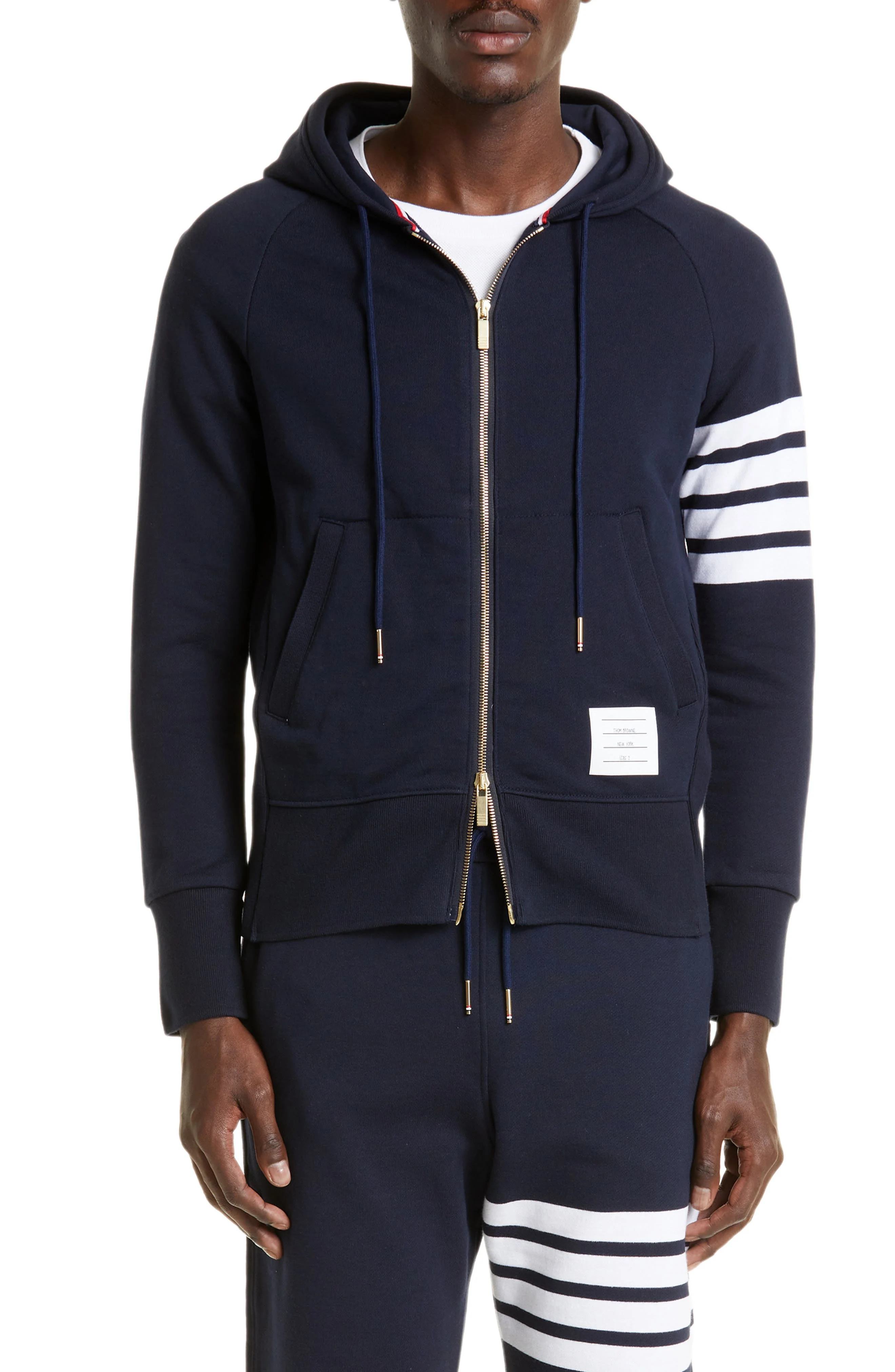 Thom Browne Classic 4-Bar Zip Cotton Hoodie in Navy at Nordstrom