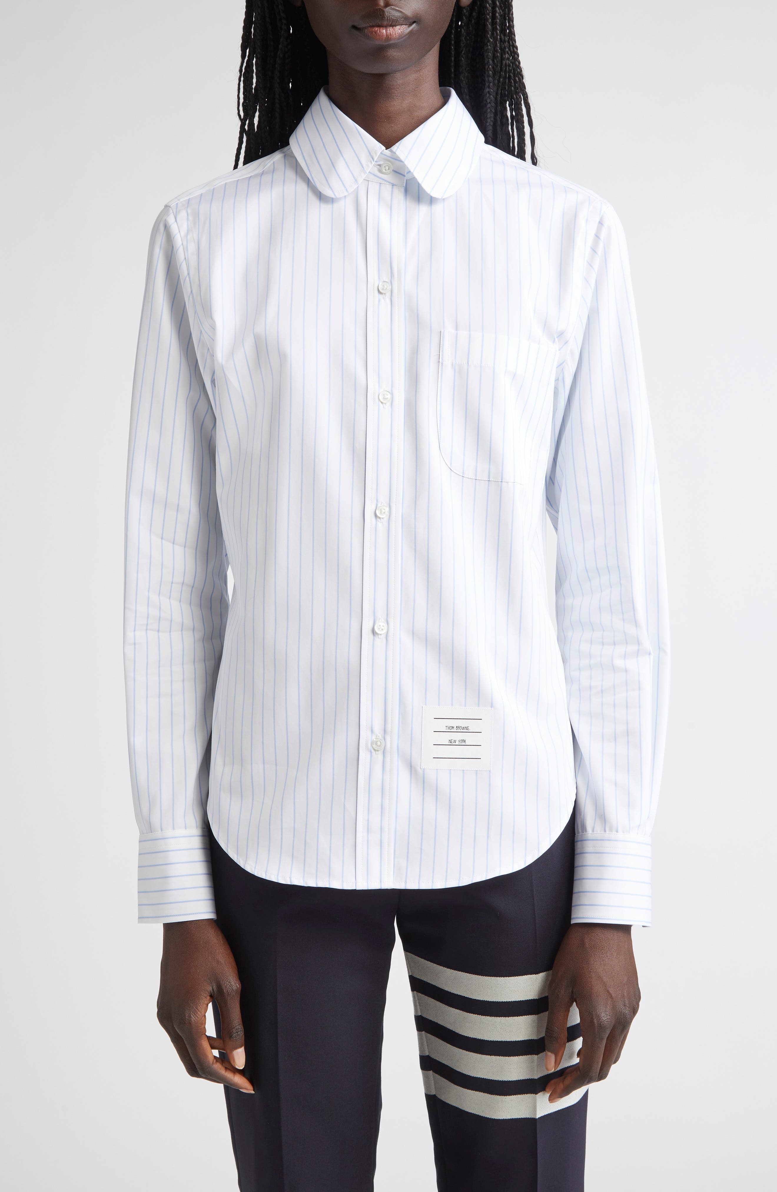 Thom Browne Classic Stripe Cotton Button-Up Shirt in Light Blue at Nordstrom