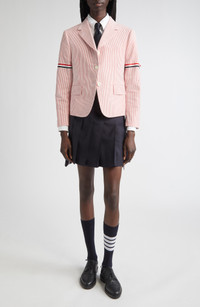 Grosgrain detailing in signature tricolor stripes frame the high-low hem of this school uniform–inspired pleated skirt tailored from plain-weave wool. Hidden side-zip closure High-low hem Cupro lining 100% wool Dry clean Made in Italy Designer Clothing