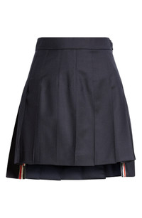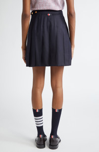 Thom Browne Drop Back Pleated Wool Miniskirt in Navy at Nordstrom