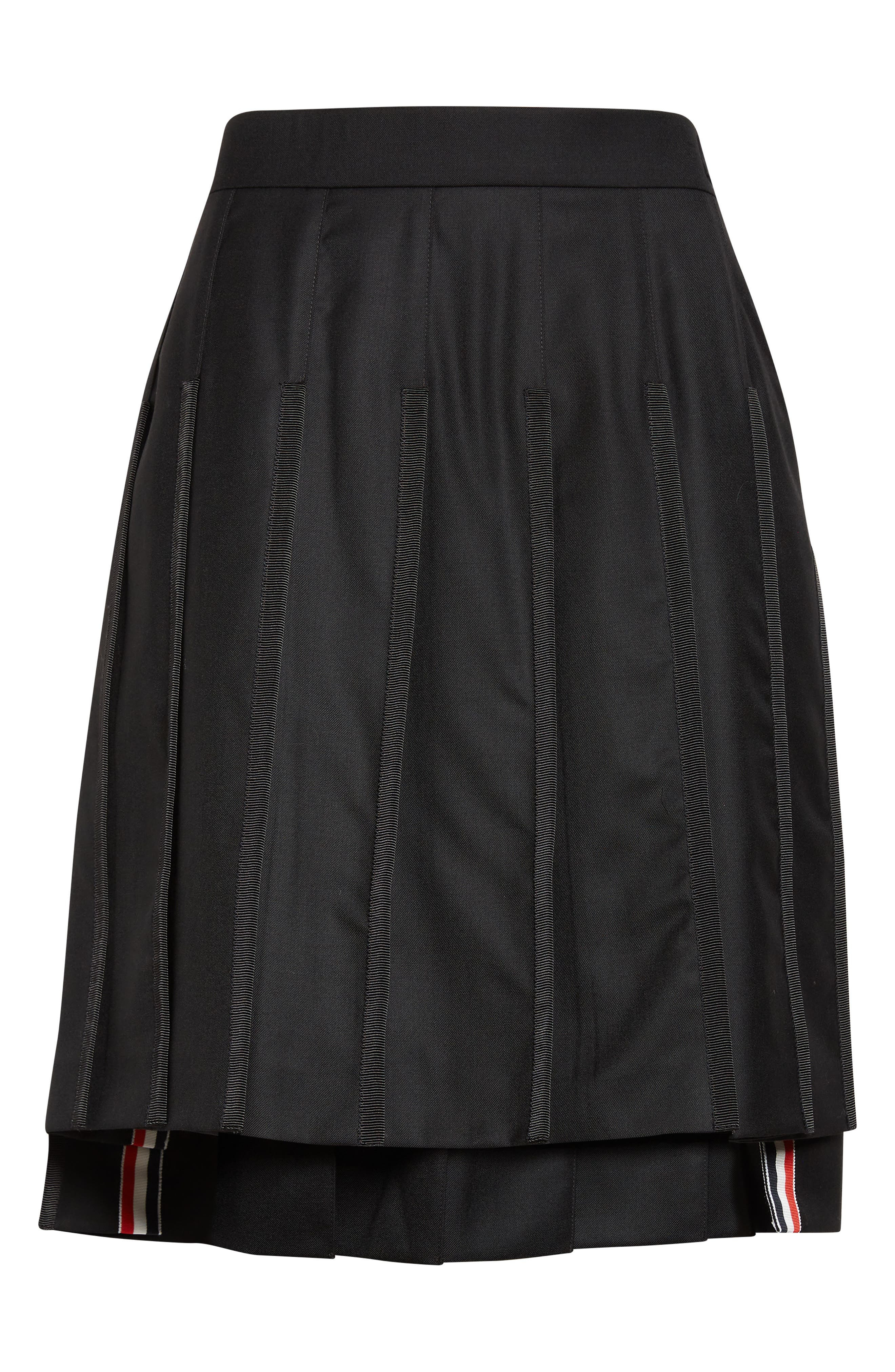 Thom Browne Drop Back Pleated Wool Skirt in Black at Nordstrom