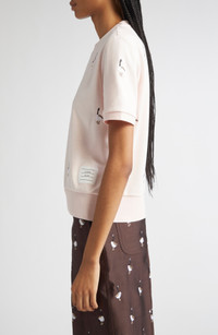 Thom Browne Embroidered Geese Short Sleeve Sweatshirt in Light Pink at Nordstrom