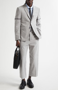 Texture makes the statement on this shades-of-grey blazer tailored from corduroy and trimmed with grosgrain along the placket and as the button-on and -off armbands. Signature red, white and blue stripes pop at the collar tag and cupro lining. Three-button closure Notched lapels Four-button cuffs Chest welt pocket; front flap pockets Side vents Cupro lining 100% cotton Dry clean Made in Italy Designer Clothing