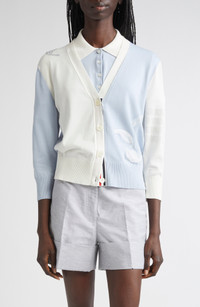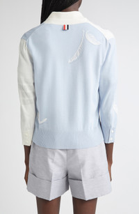Thom Browne Fun-Mix 4-Bar Feather Intarsia Three Quarter Sleeve Cardigan in Light Blue at Nordstrom