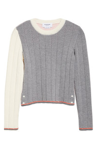 Signature tricolor trim puts the maison's unmistakable stamp on this virgin-wool sweater featuring the Fun-Mix colorblocking and ladder stitching. Crewneck Long sleeves Side vents with button closure 100% virgin wool Dry clean Made in Italy Designer Clothing
