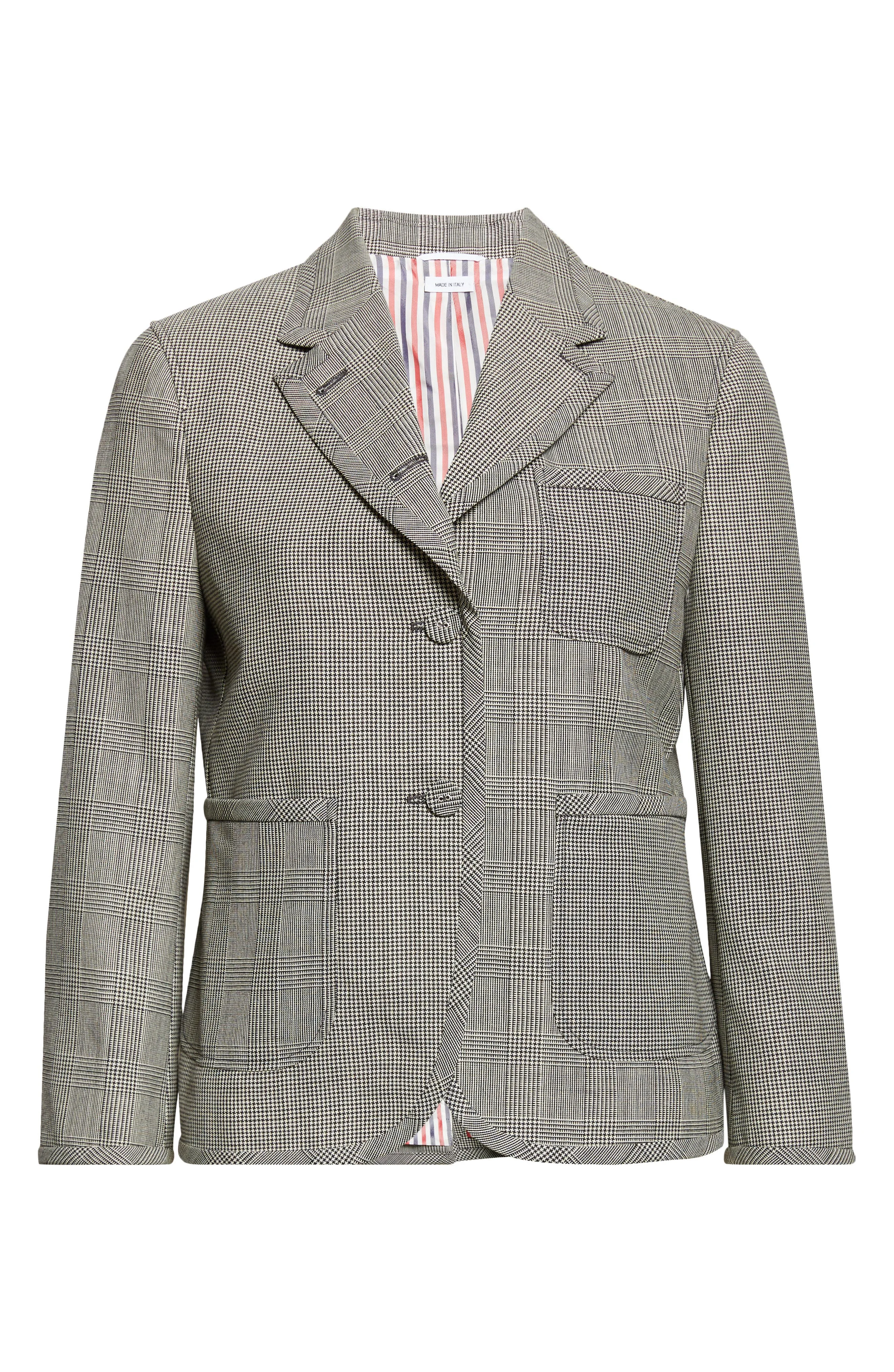 Thom Browne Glen Plaid Funmix Fresco Wool Crop Sport Coat in Black/White at Nordstrom