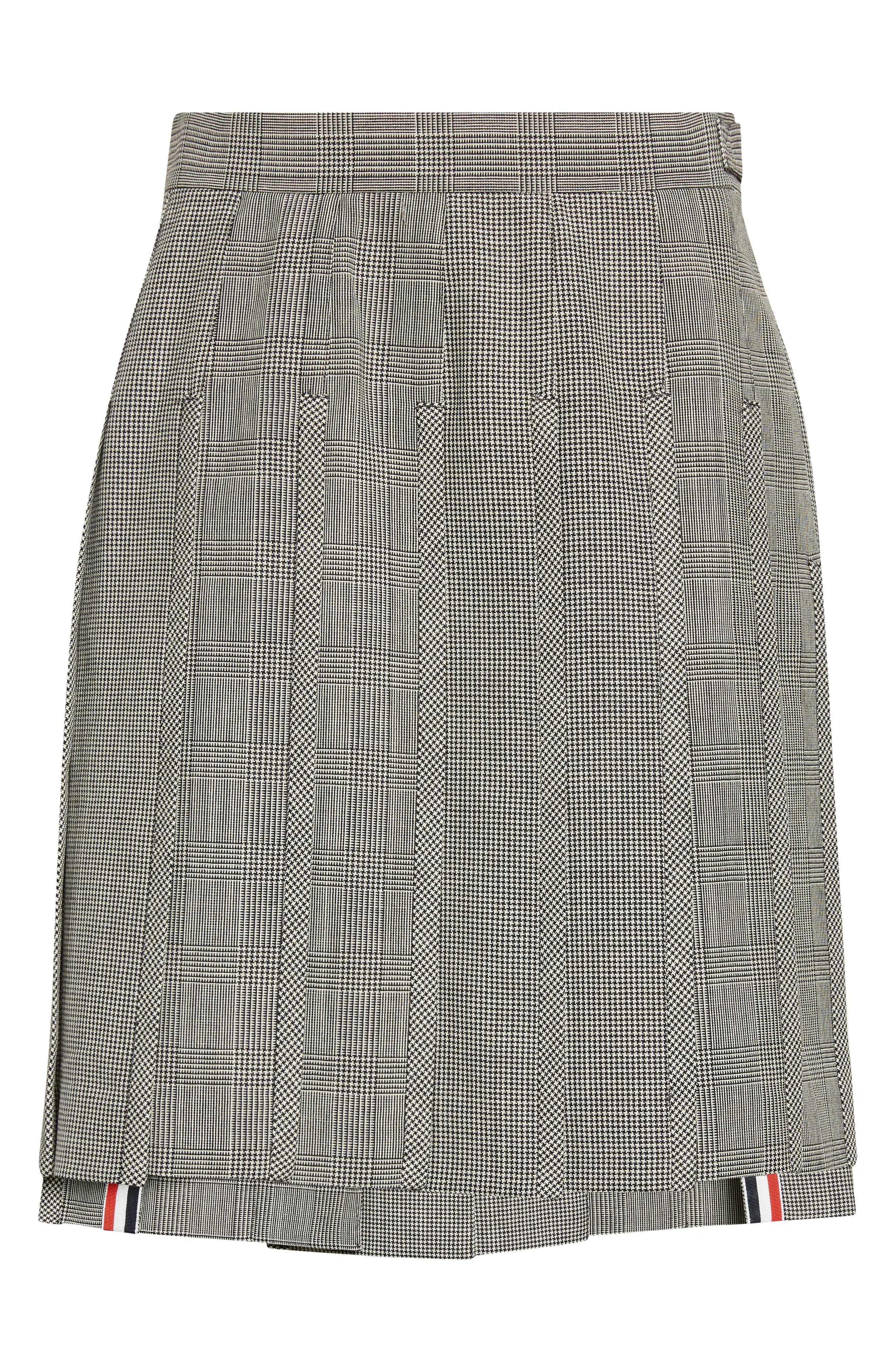 Thom Browne Glen Plaid Pleated Wool Skirt in Black/White at Nordstrom