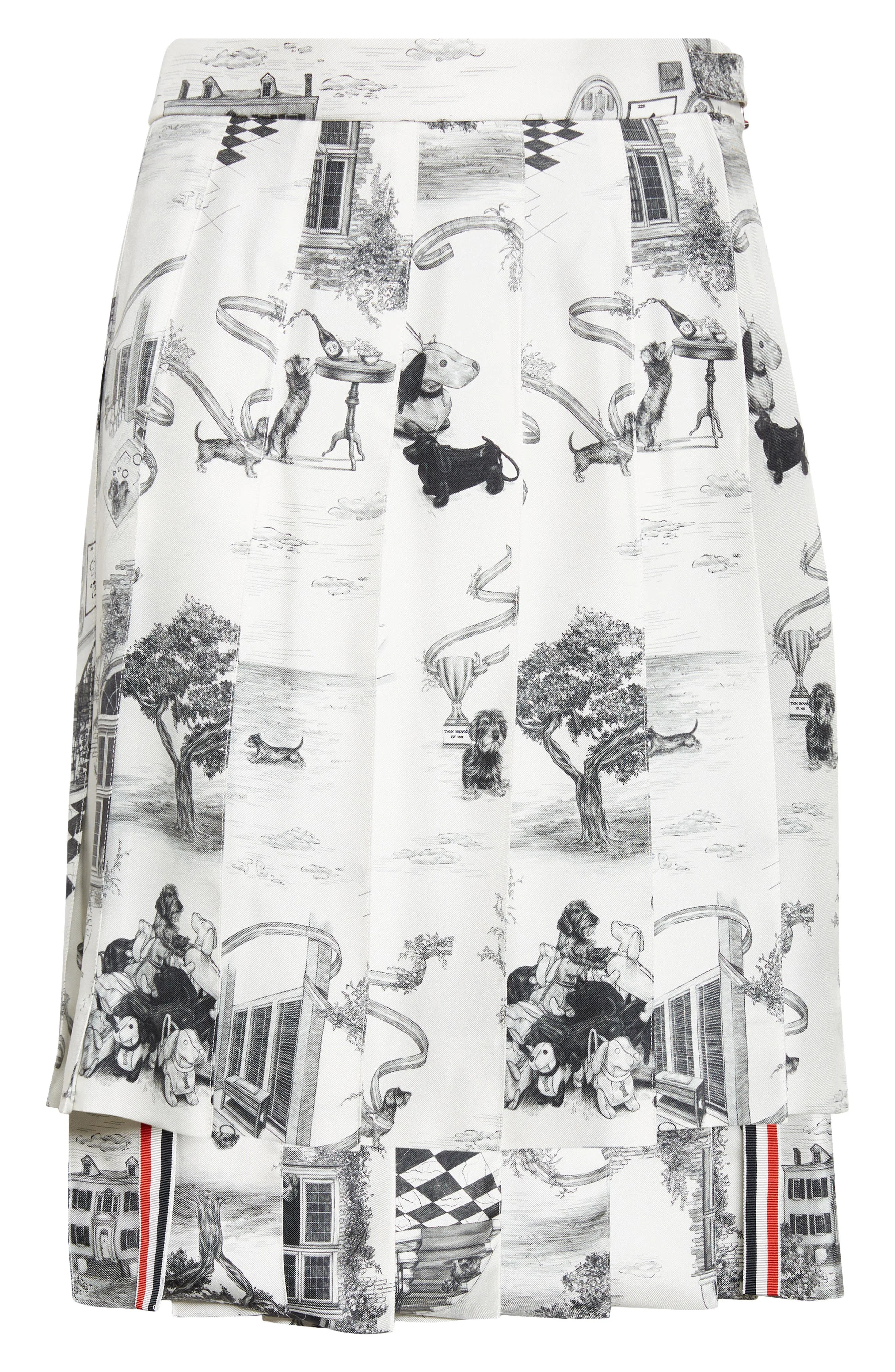 Thom Browne Hector Toile Classic Silk Pleated Skirt in Black/White at Nordstrom