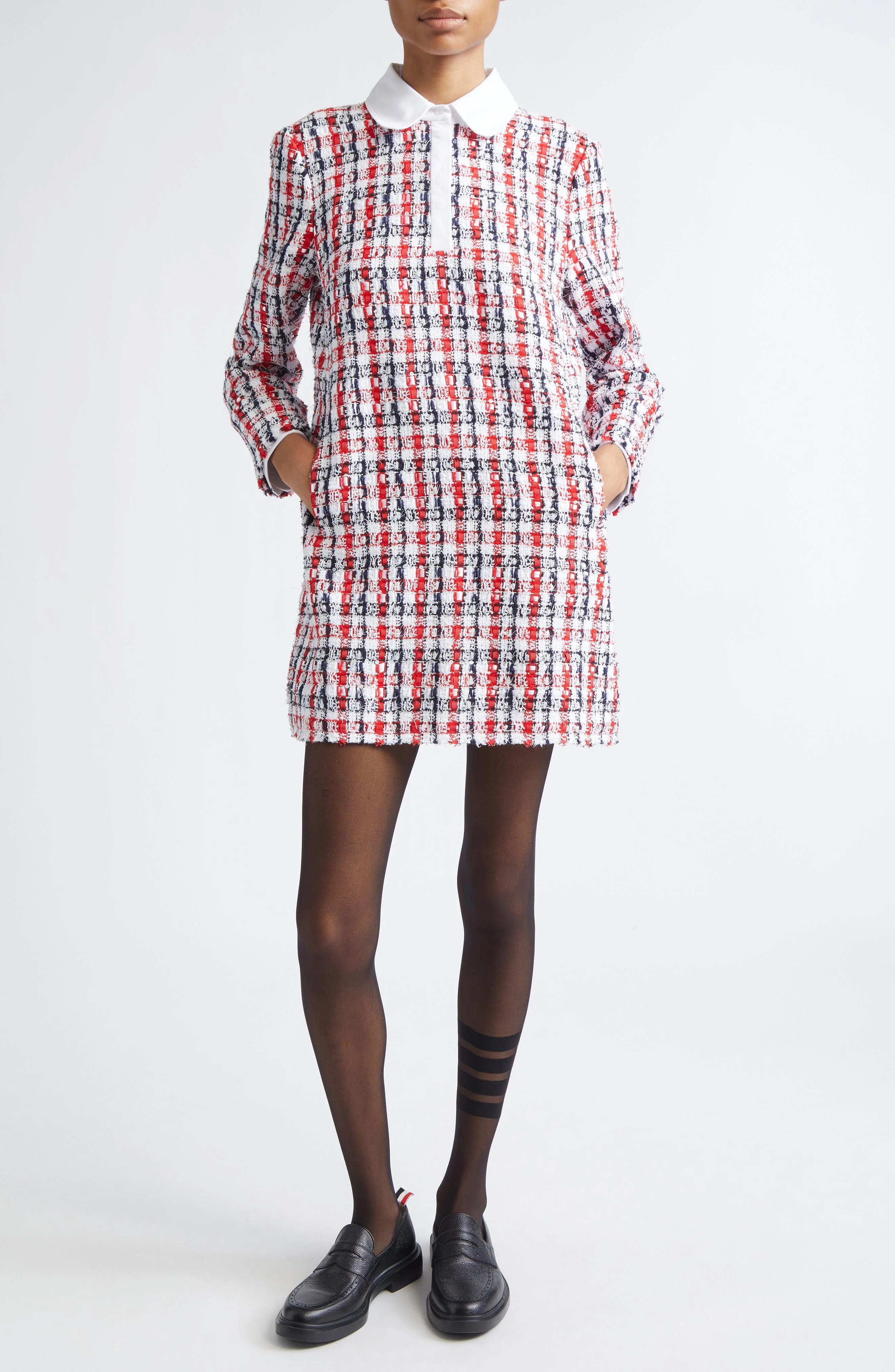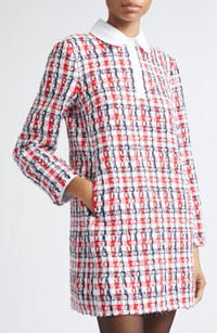 Thom Browne Long Sleeve Bouclé Tweed Dress in Red/White/Blue at Nordstrom