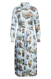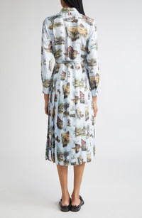 SCENIC TOILE SILK TWILL PLEATED SHIRTDRESS
