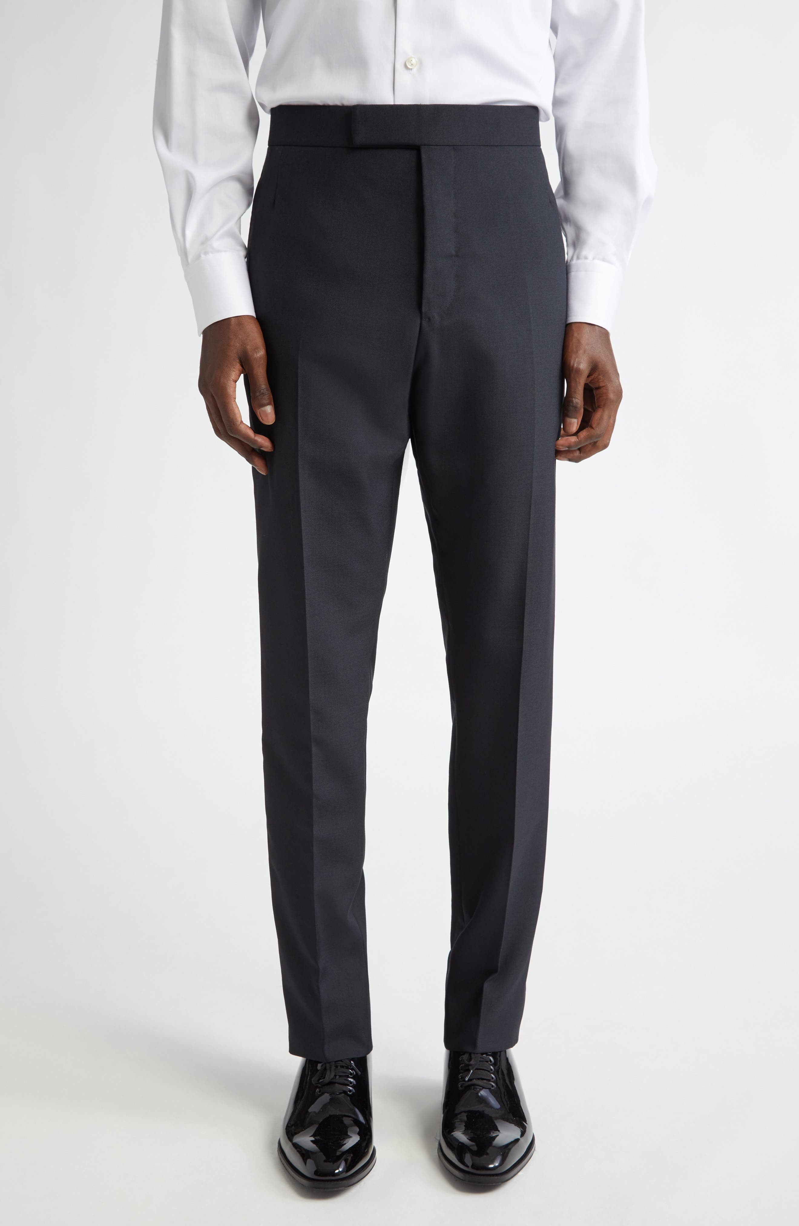Thom Browne Mid Rise Wool Blend Skinny Pants in Black at Nordstrom