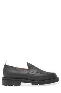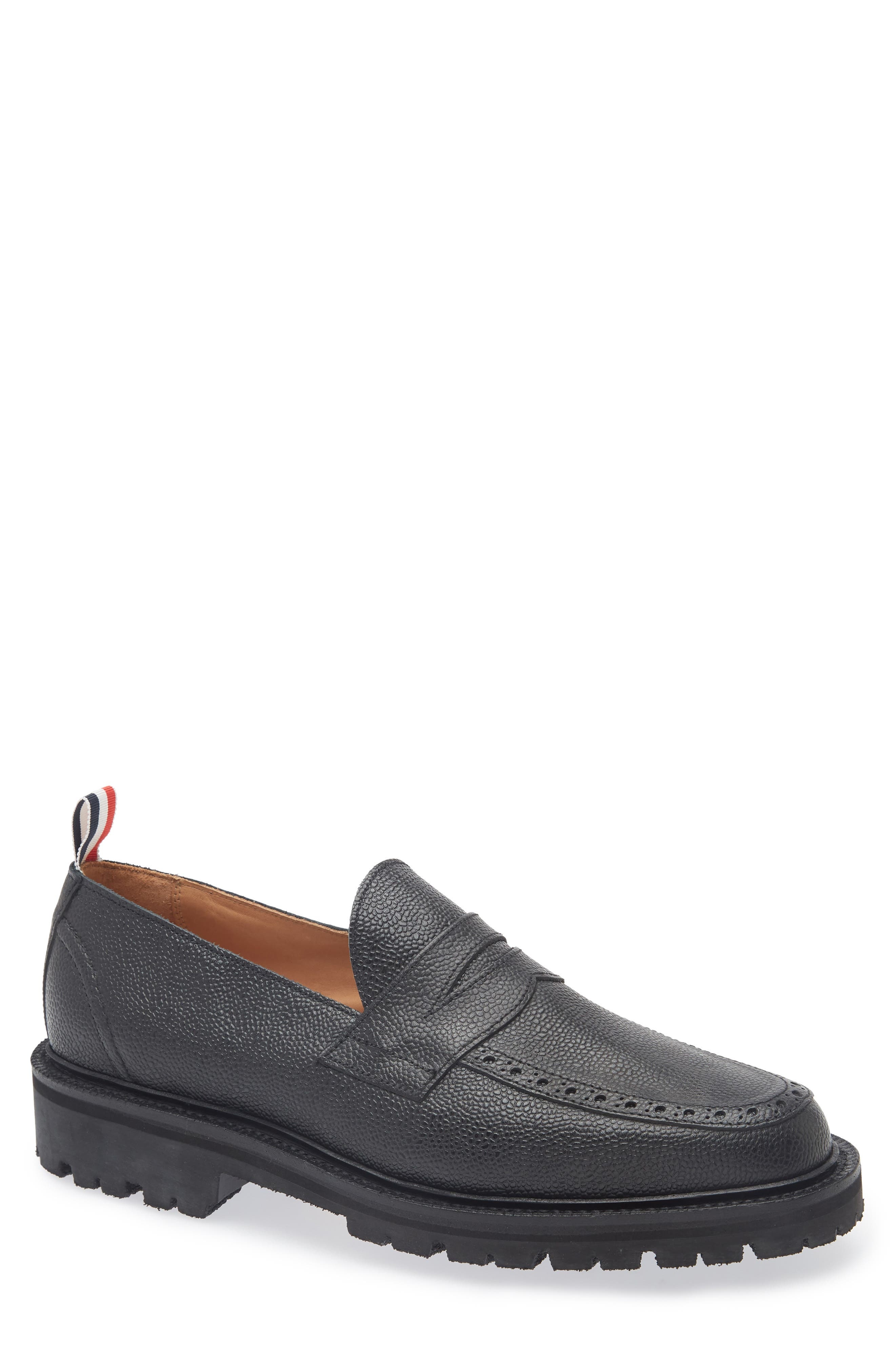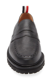 Black Pebble Grain Leather Rubber Commando Sole Classic Penny Loafer