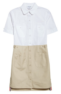 Thom Browne Short Sleeve Shirtdress in Khaki at Nordstrom